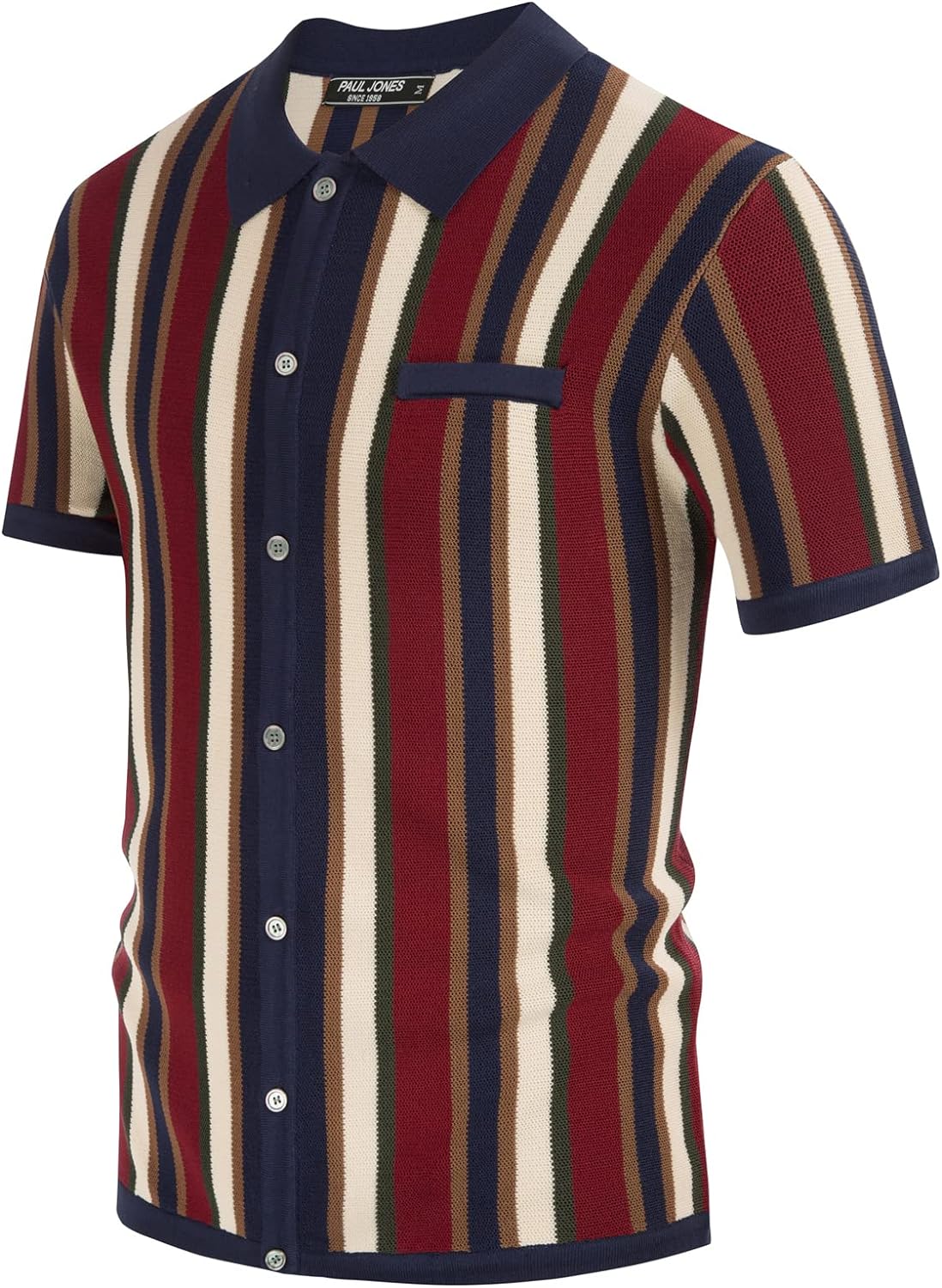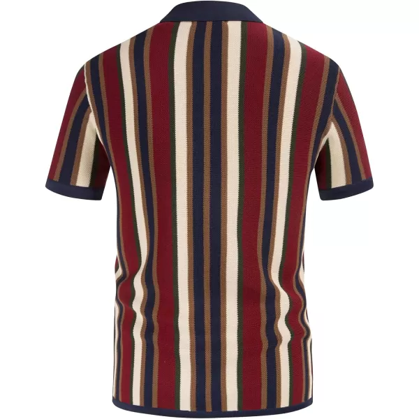 Men’s Short Sleeve Knit Shirt Vintage Stripe Lapel Collar Polo Shirt