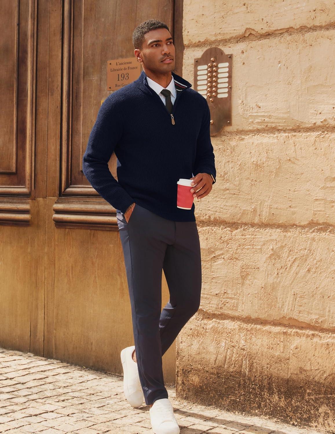 Get the PJ PAUL JONES Men Quarter Zip Pullover Sweaters Casual Lightweight Knit Dress Sweater(Navy Blue) you’ve been eyeing at a discounted price during our seasonal sale event.