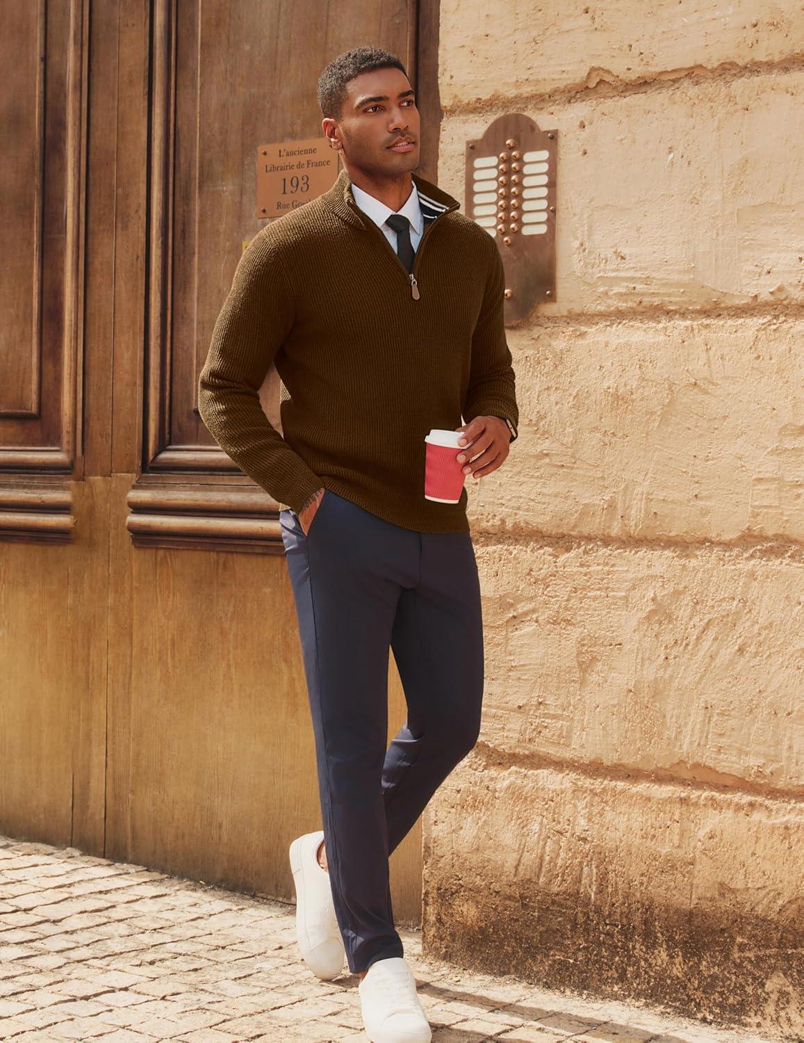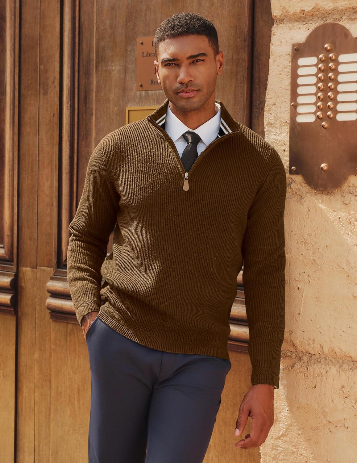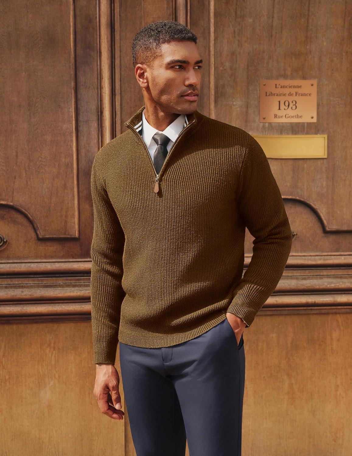 PJ PAUL JONES Men Quarter Zip Pullover Sweaters Casual Lightweight Knit Dress Sweater(Yellow Coffee)