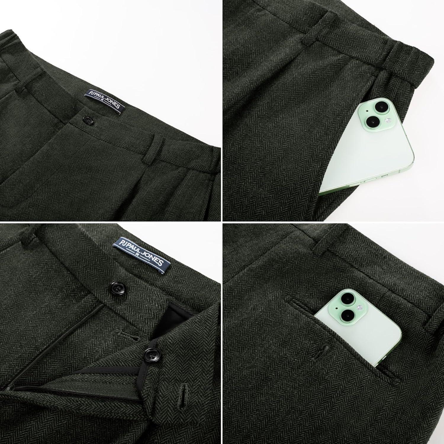 Be the first to review “PJ PAUL JONES Mens 2 Piece Suit Vintage Herringbone Tweed Suits 2 Button Peak Lapel Blazer Pants Set(Army Green)”