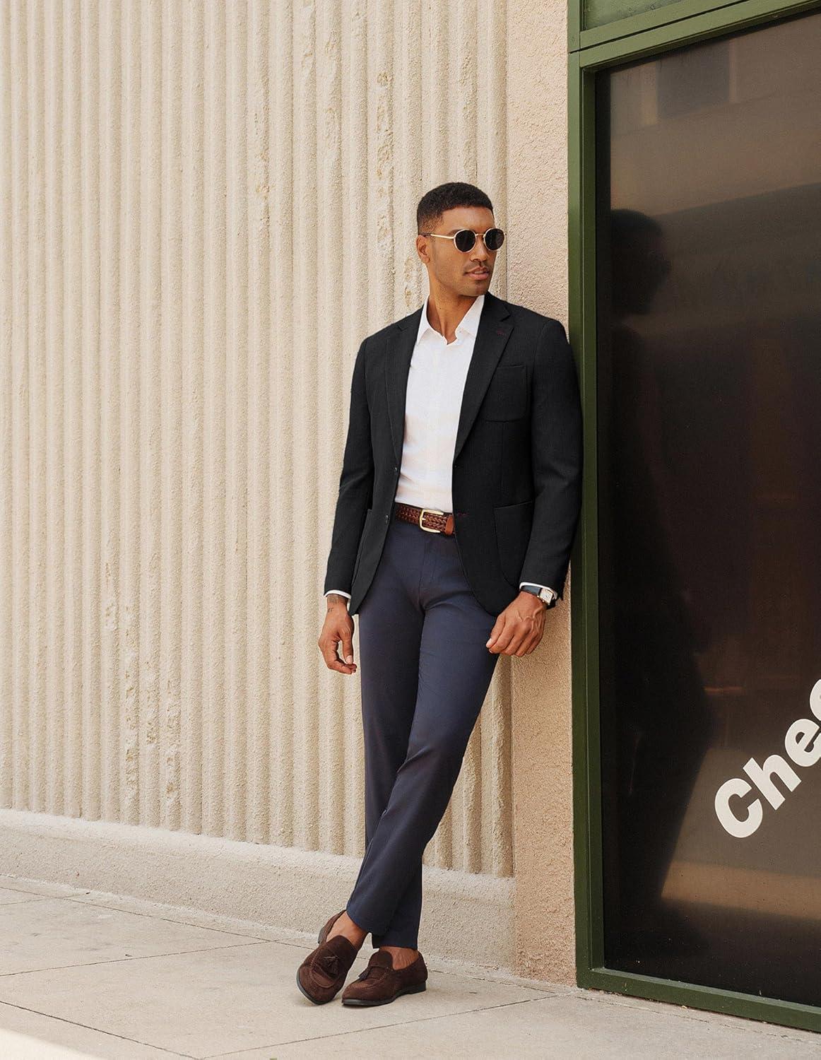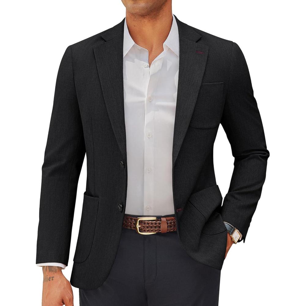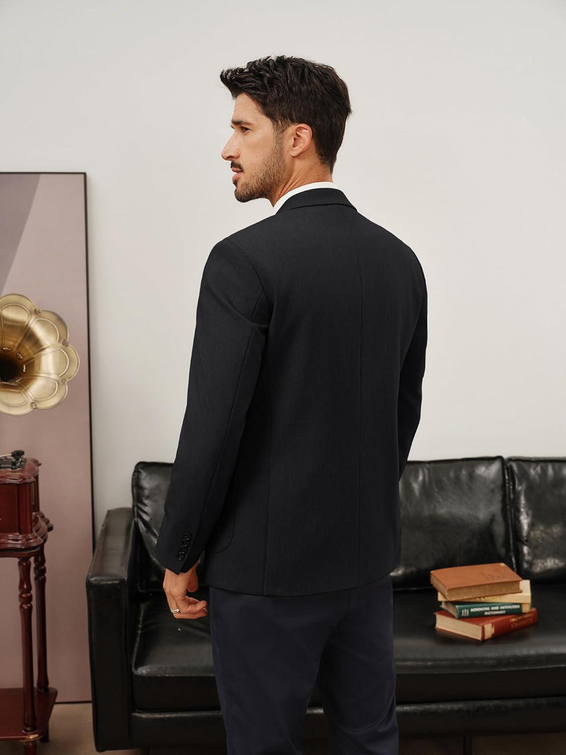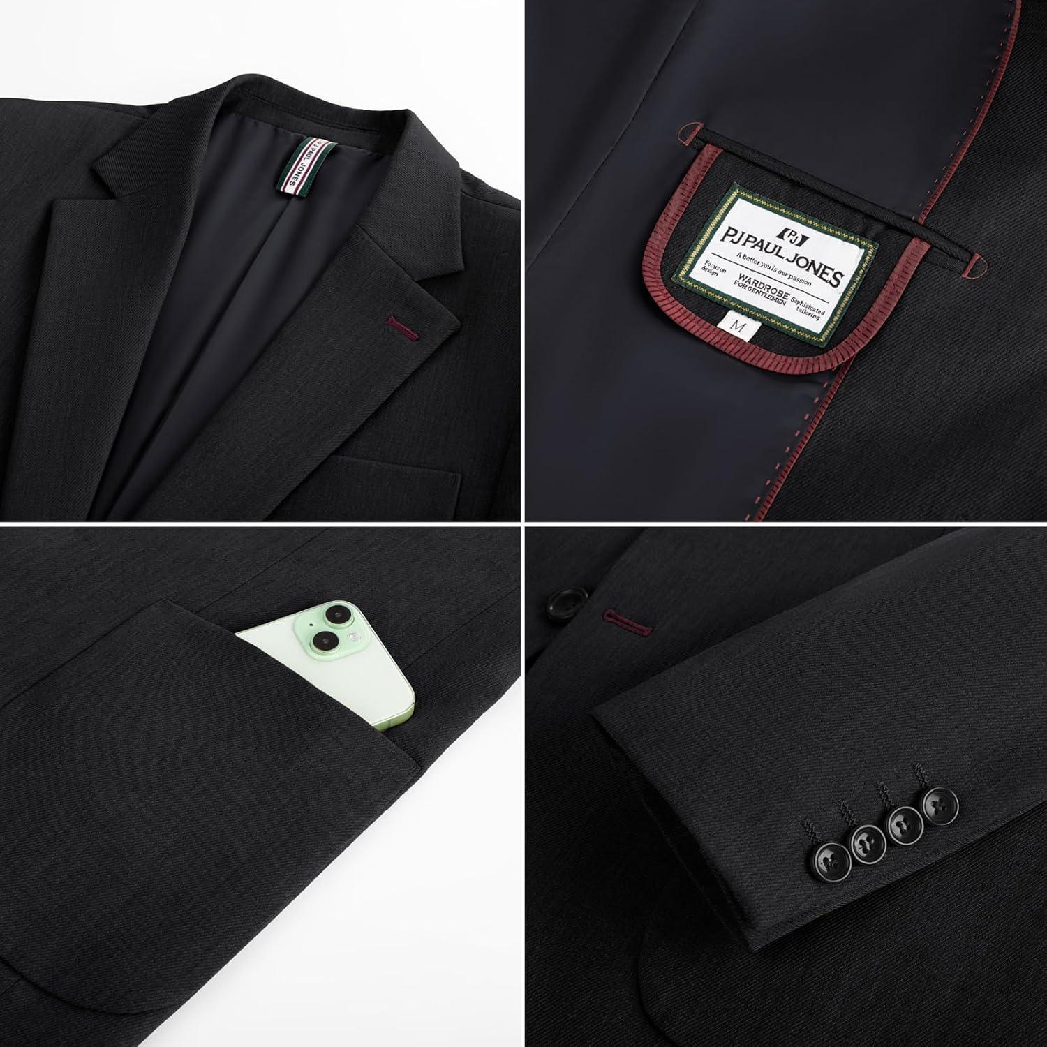 PJ PAUL JONES Mens Blazer Casual Two Button Sport Coats Notched Lapel Solid Suit Jackets(Black)