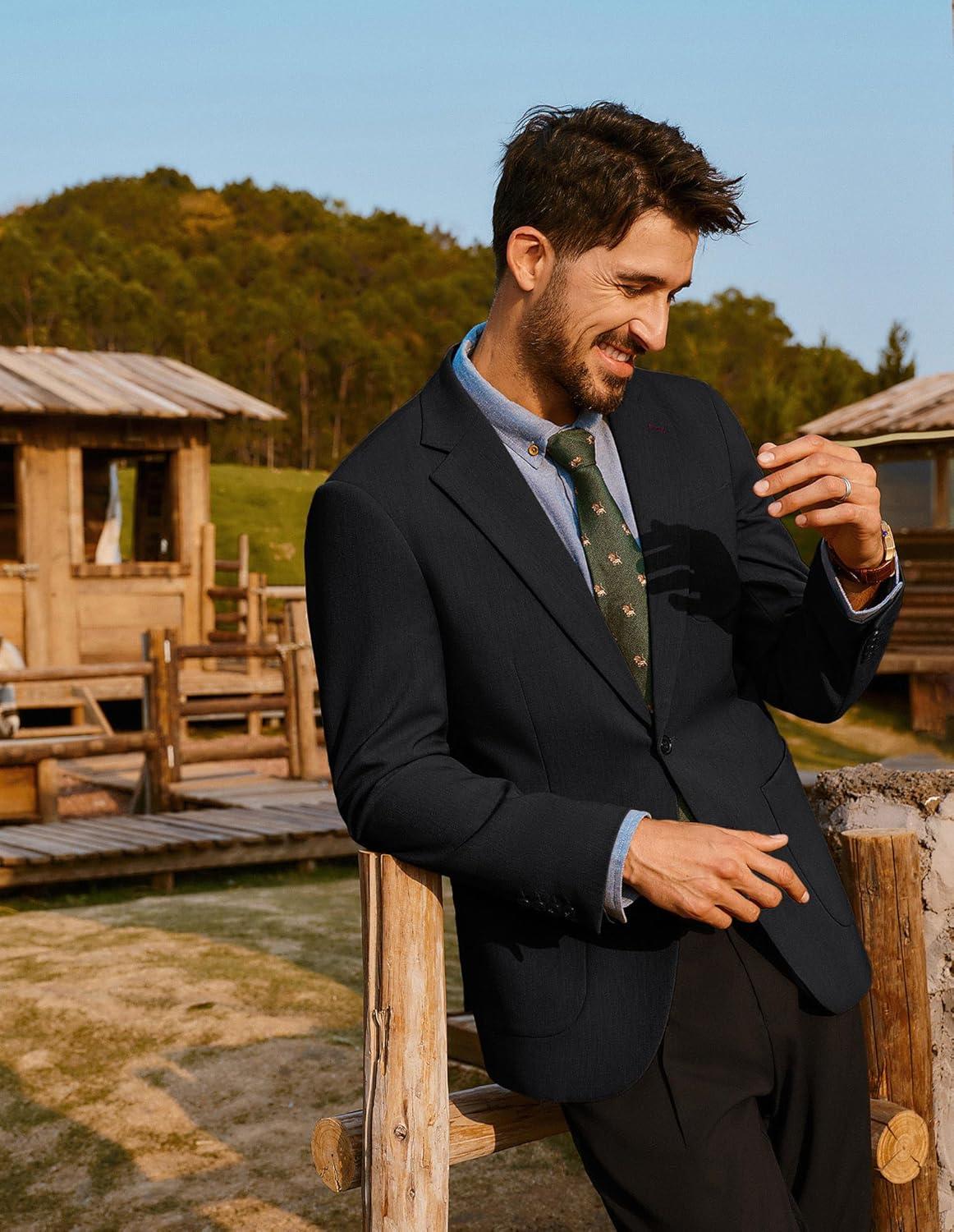 PJ PAUL JONES Mens Blazer Casual Two Button Sport Coats Notched Lapel Solid Suit Jackets(Blue)