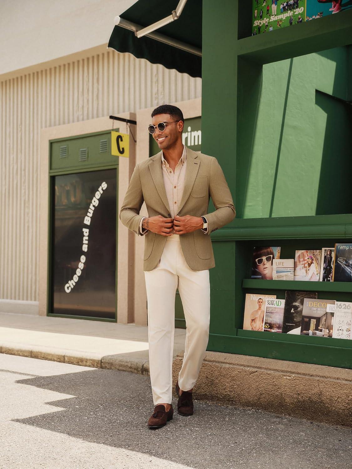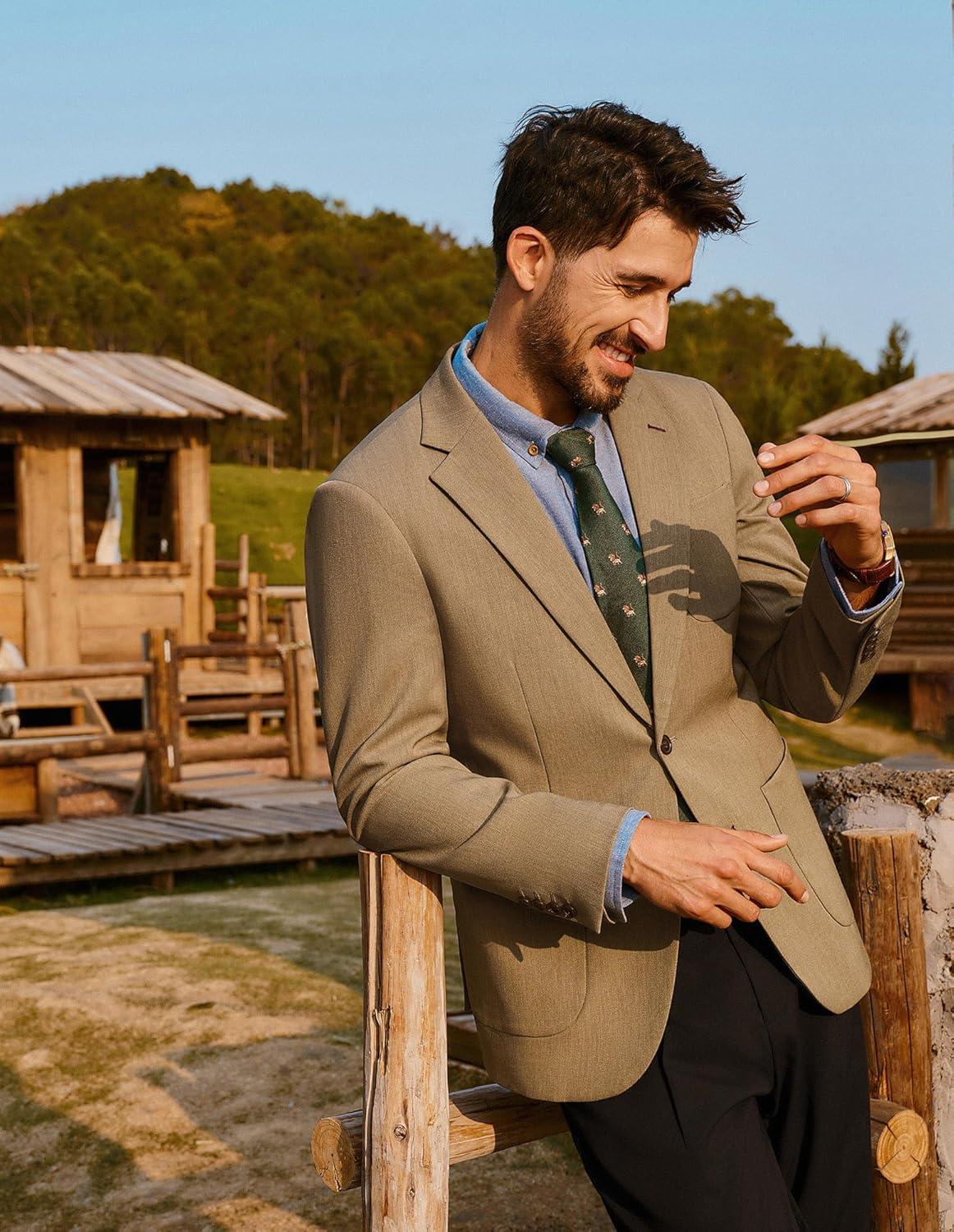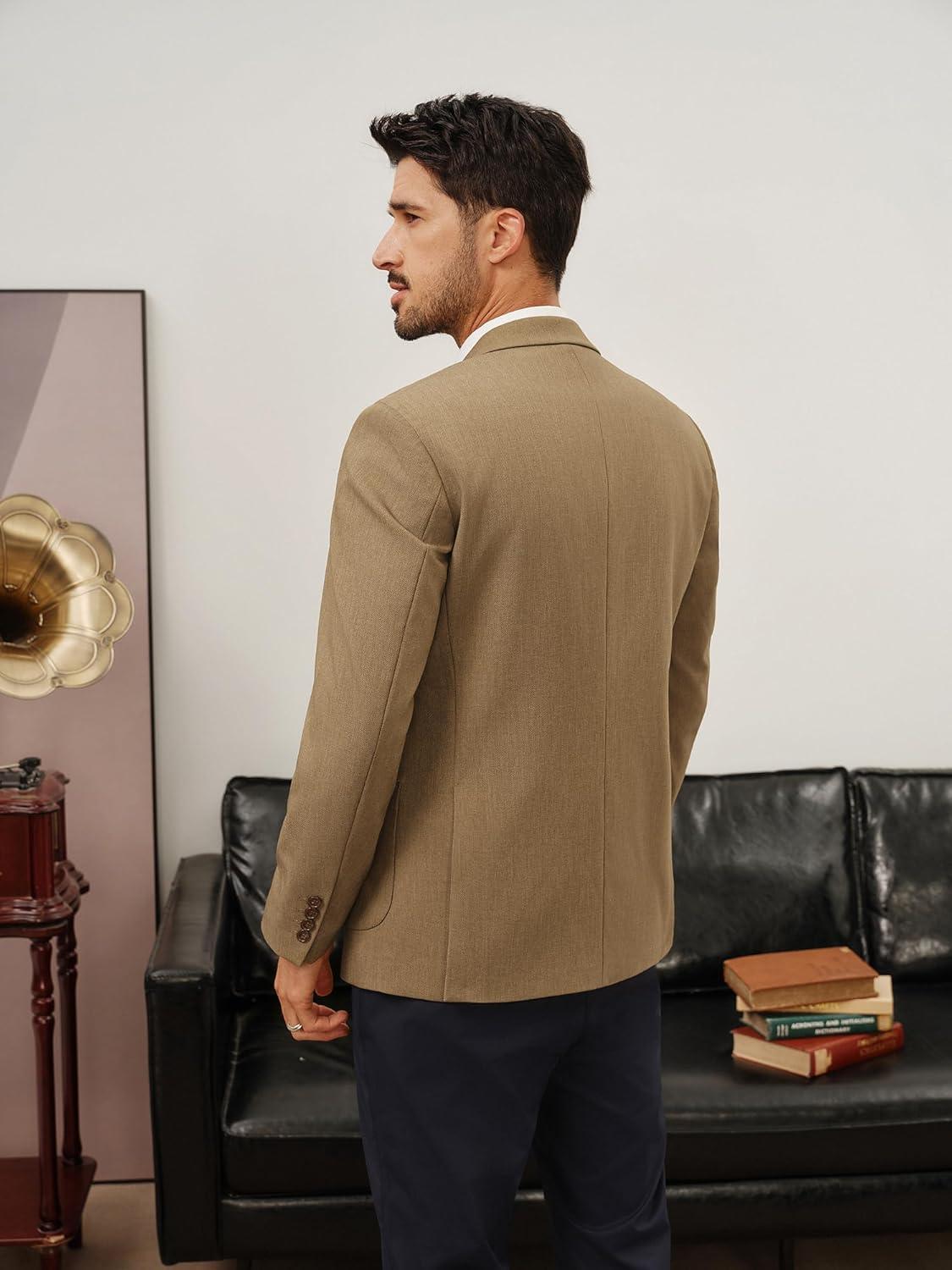 PJ PAUL JONES Mens Blazer Casual Two Button Sport Coats Notched Lapel Solid Suit Jackets(Brown)
