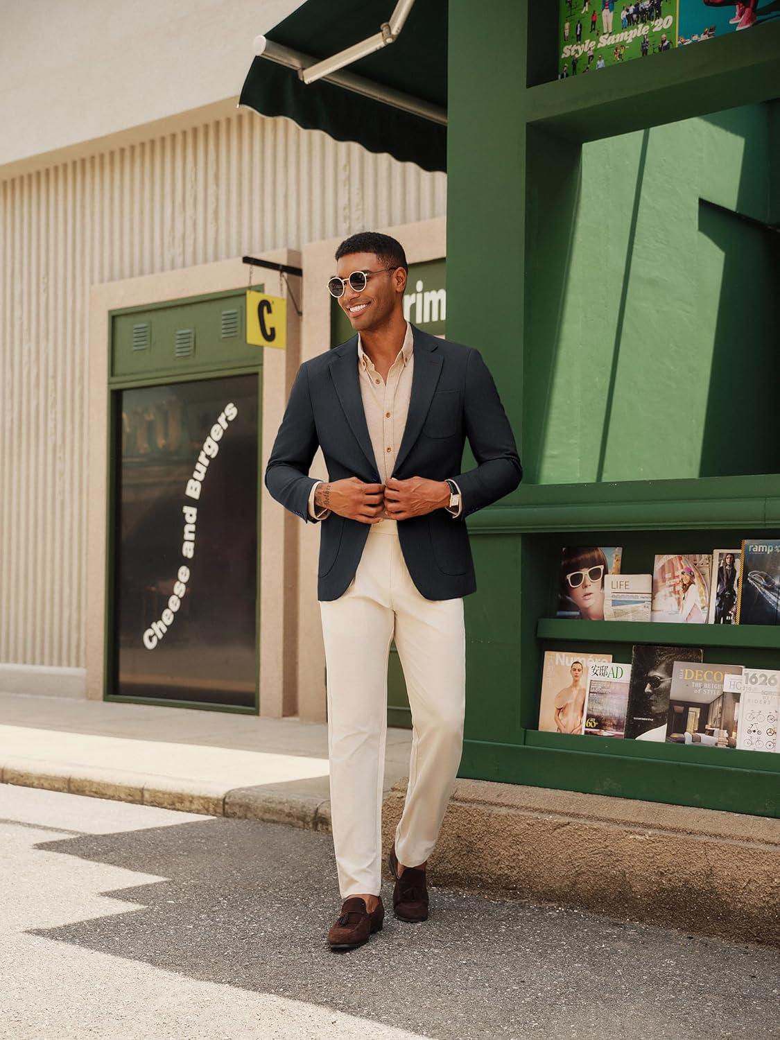 PJ PAUL JONES Mens Blazer Casual Two Button Sport Coats Notched Lapel Solid Suit Jackets(Dark Grey Blue)