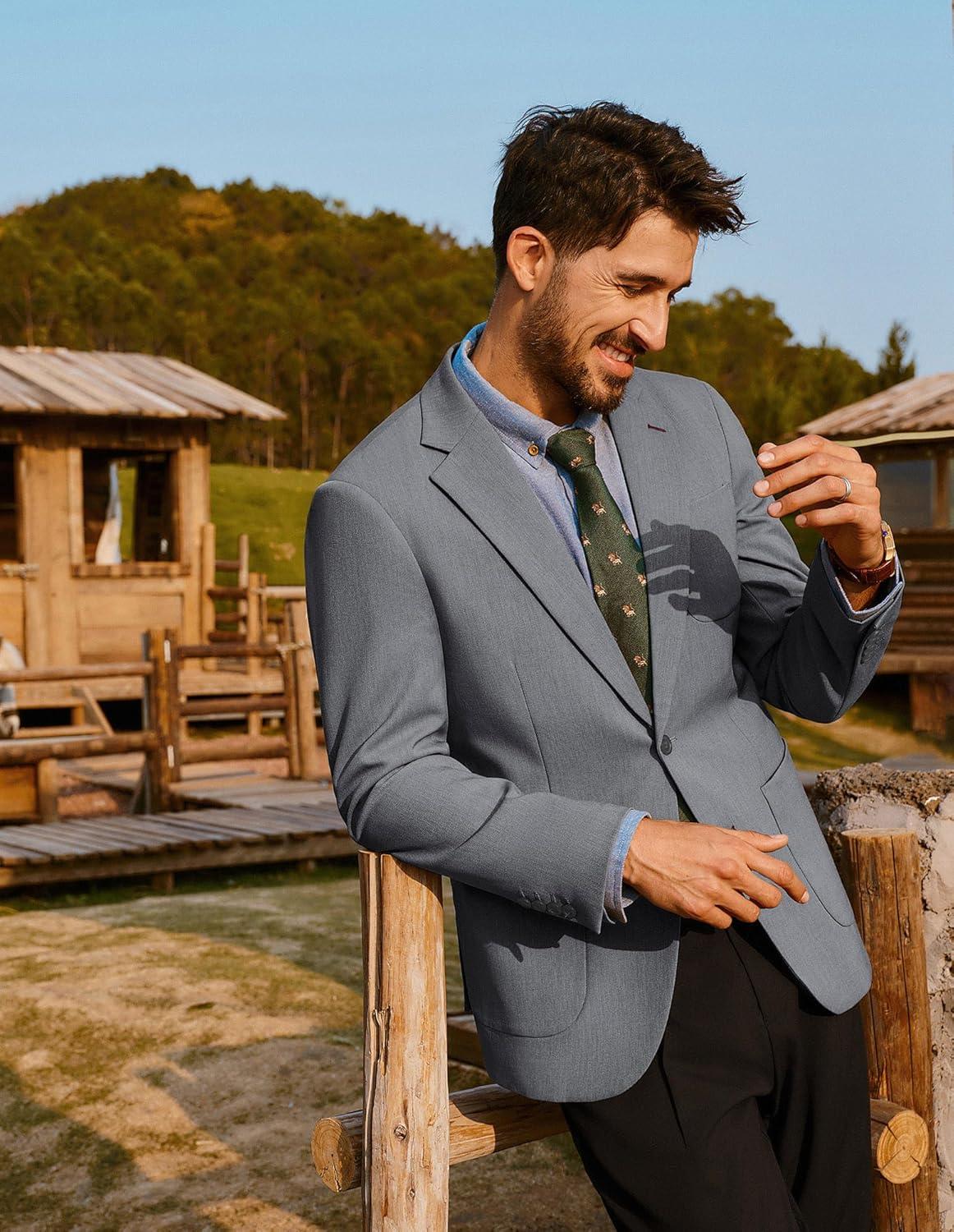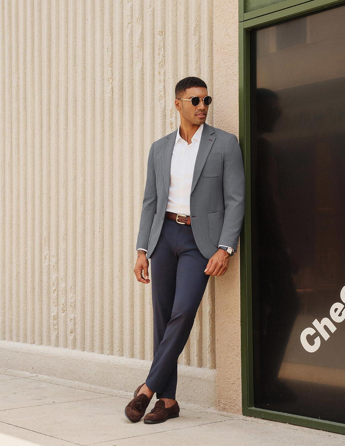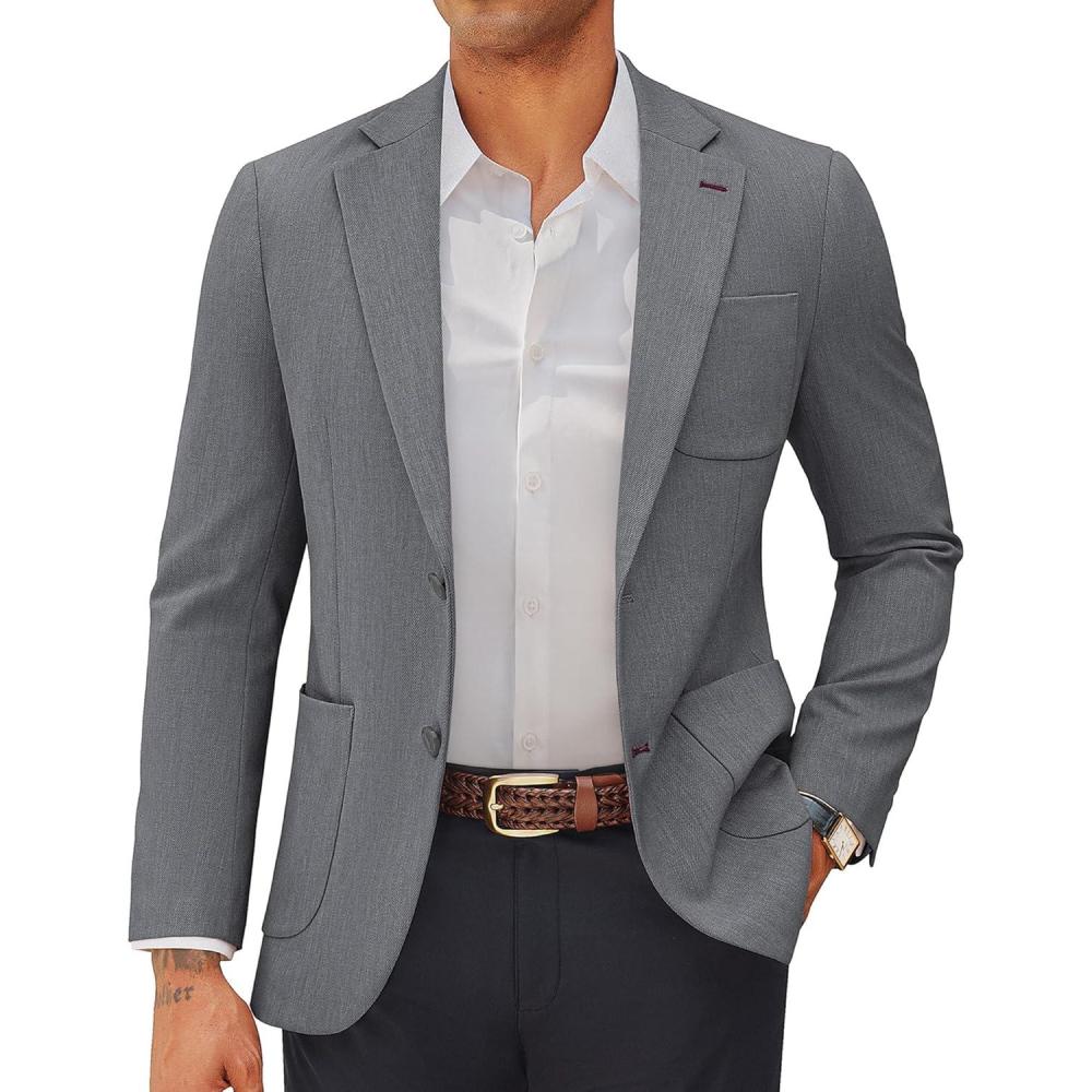 PJ PAUL JONES Mens Blazer Casual Two Button Sport Coats Notched Lapel Solid Suit Jackets(Grey)