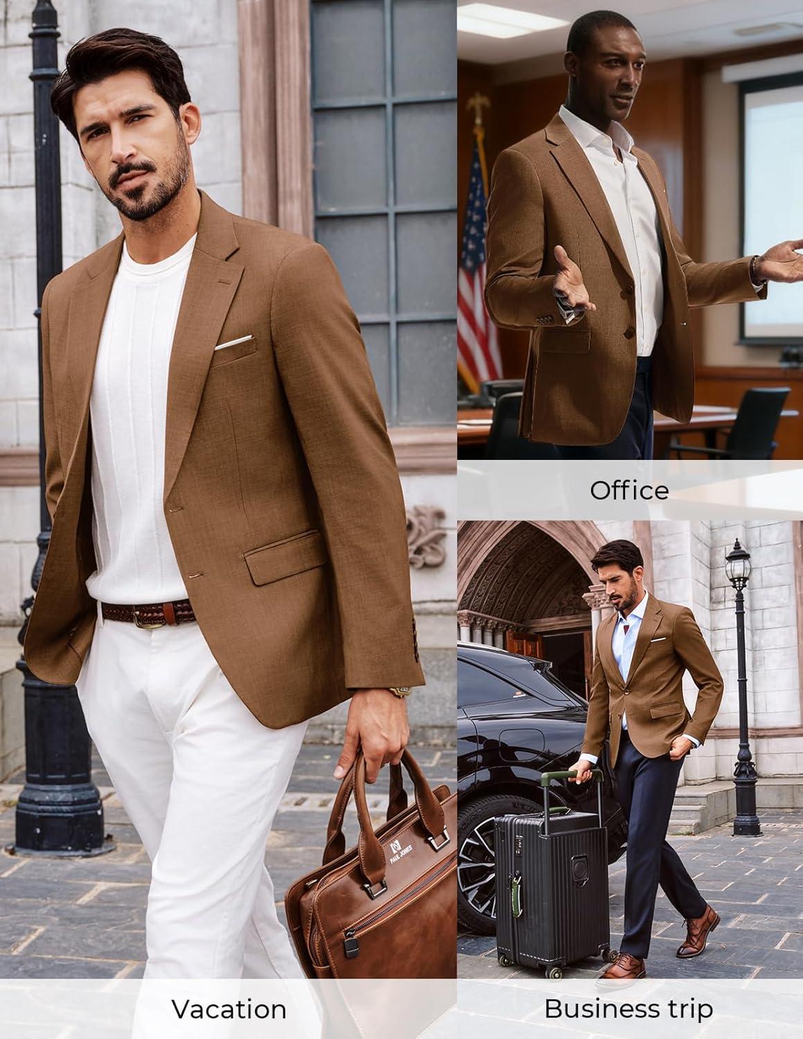 PJ PAUL JONES Mens Blazer Classic Lightweight Sports Coat Casual Sport Suit Jackets(Brown)