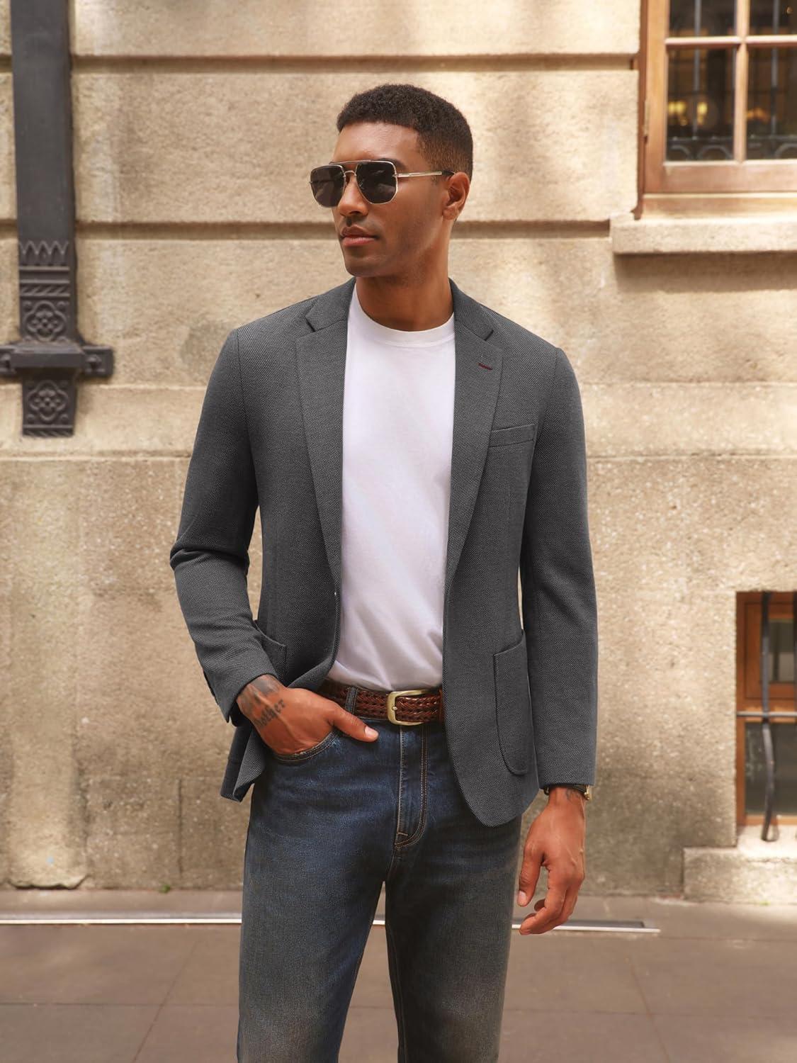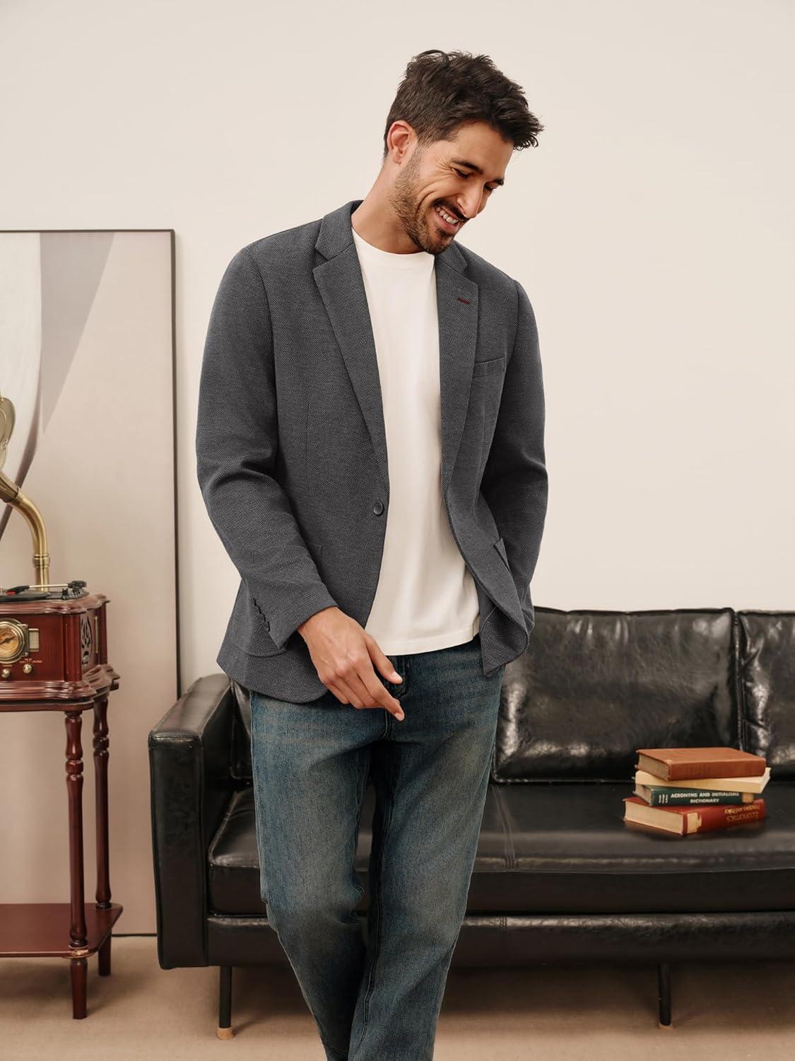 PJ PAUL JONES Mens Blazer Lightweight Knit Sport Coat Casual One Button Suit Jackets(Dark Gray)