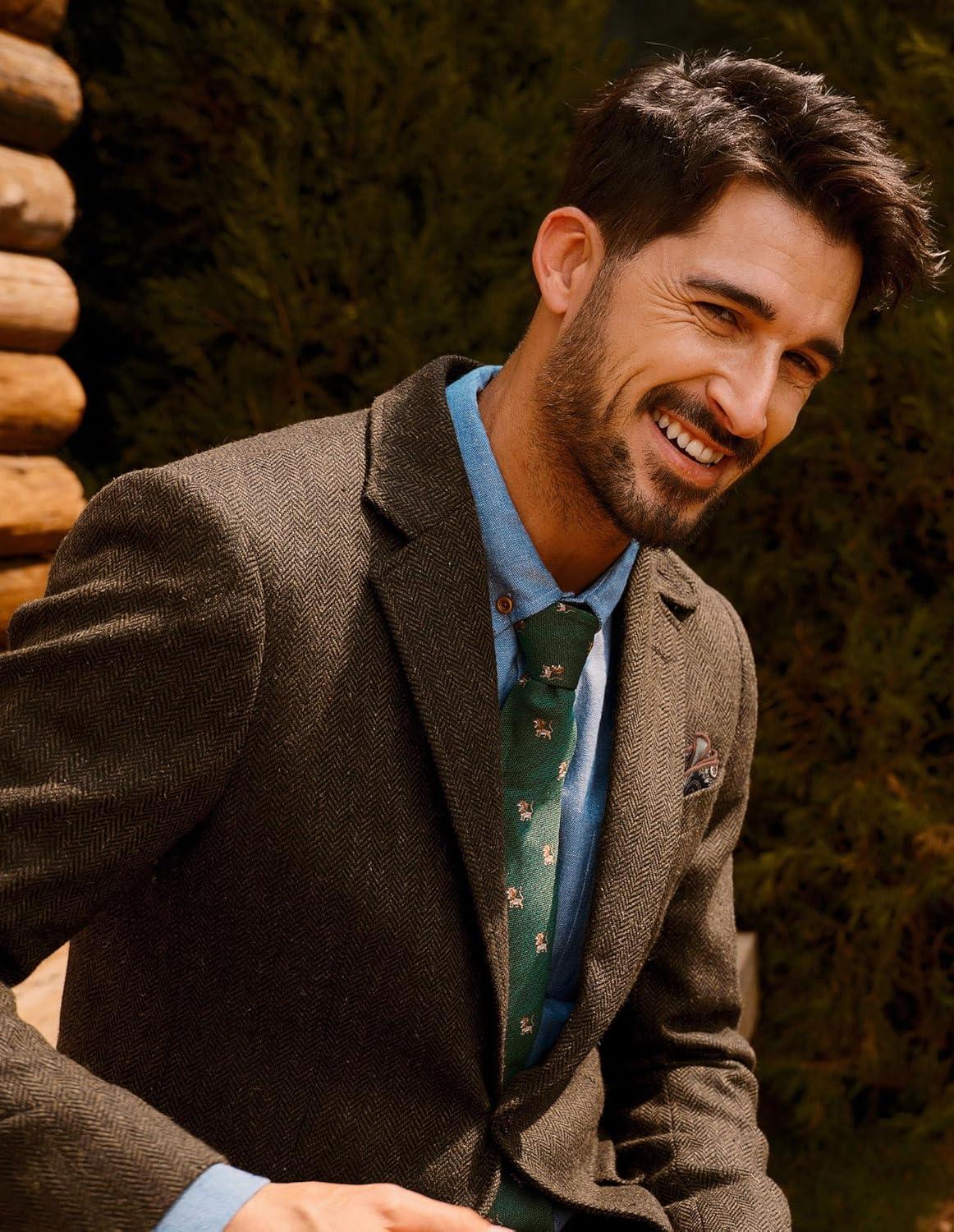 PJ PAUL JONES Mens Blazer Vintage Wool Blend Sport Coat Herringbone Tweed Blazer Suit Jacket with Pocket Square(Green)