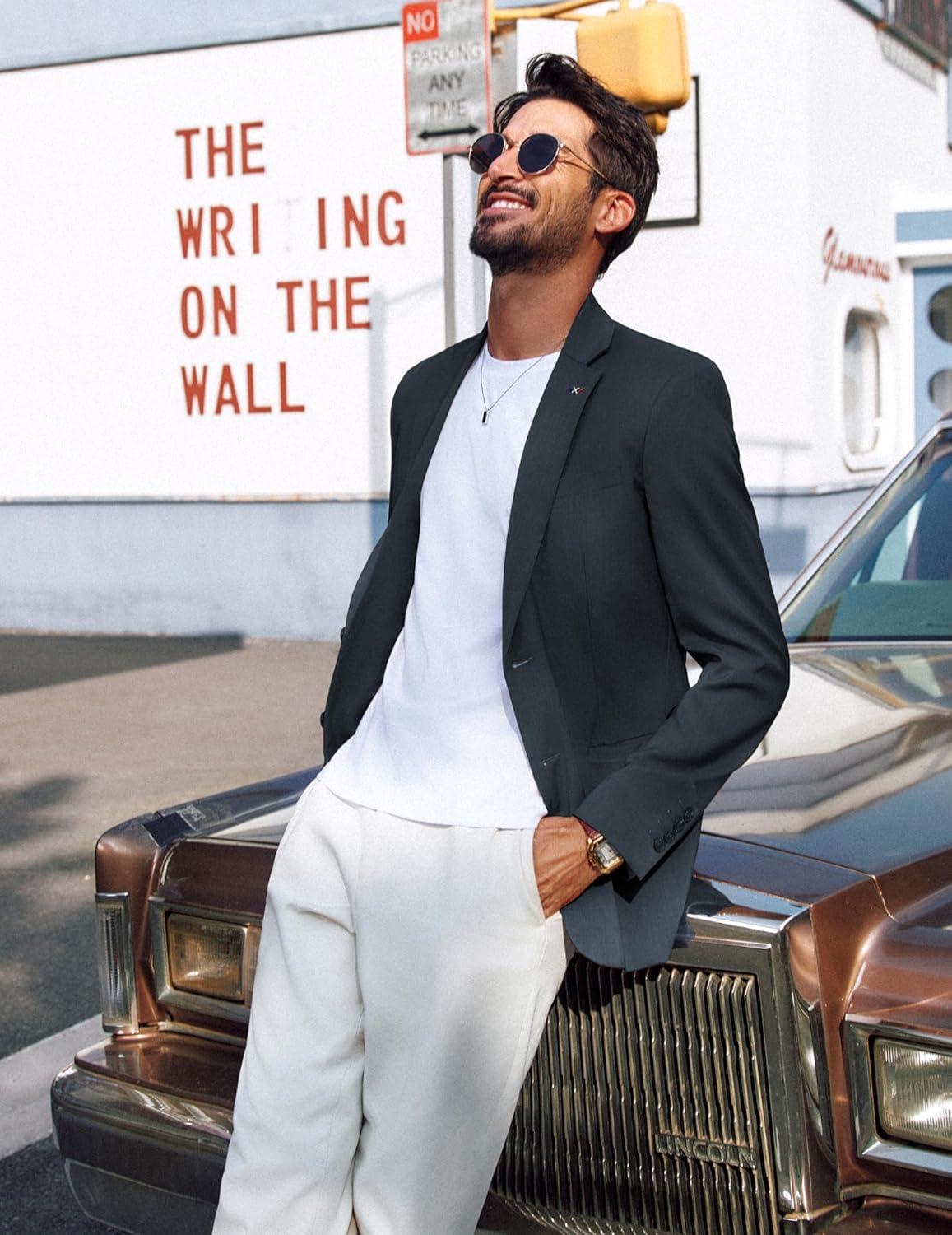PJ PAUL JONES Mens Blazers Sport Coats Casual Lightweight Two Button Business Suit Jackets(Navy Blue)