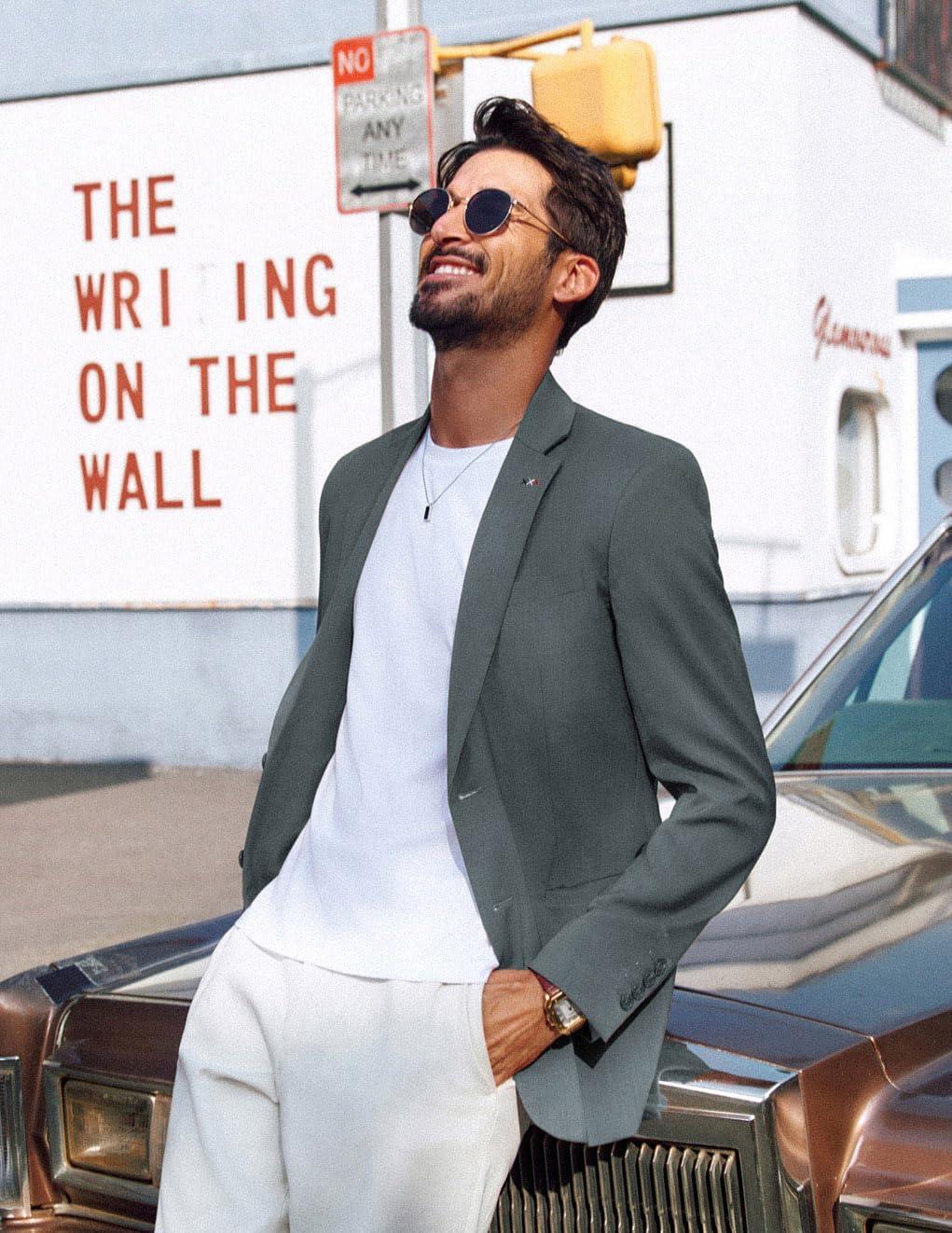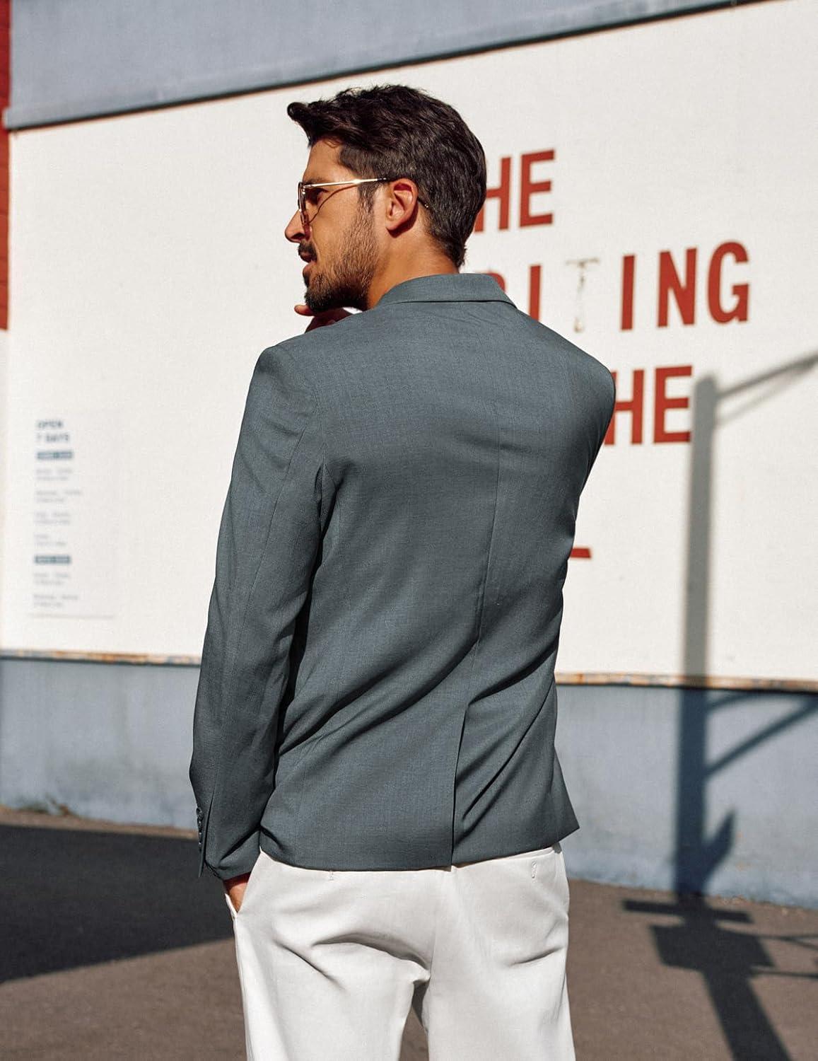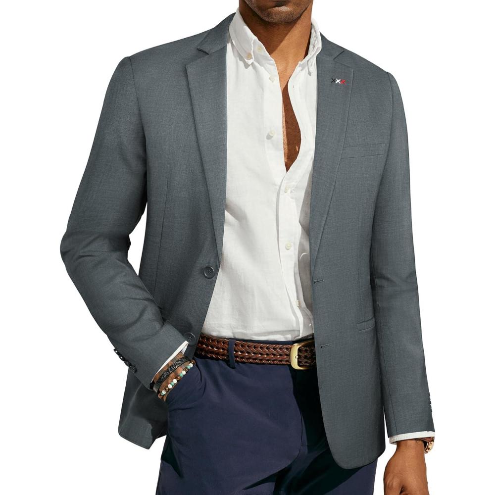 PJ PAUL JONES Mens Blazers Sport Coats Casual Lightweight Two Button Business Suit Jackets(Grey05)