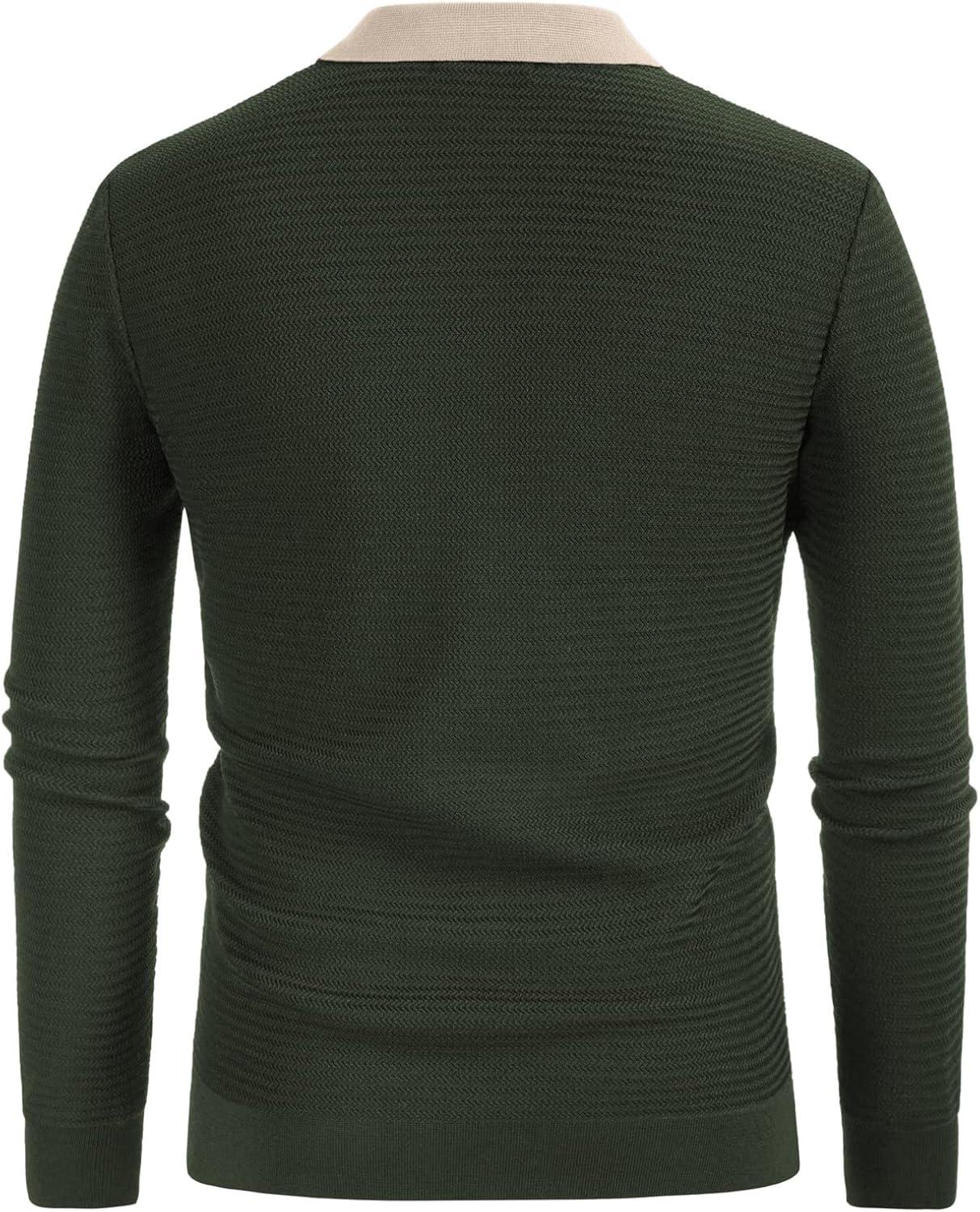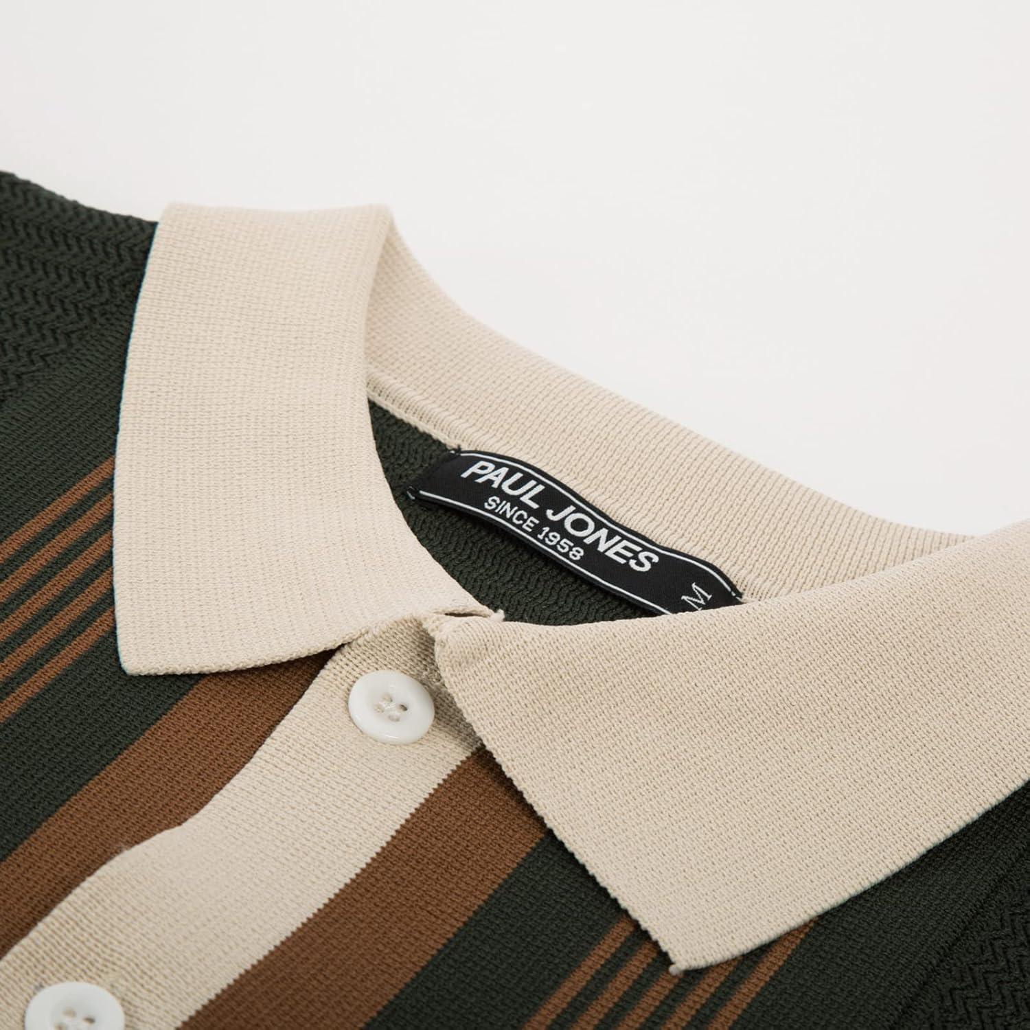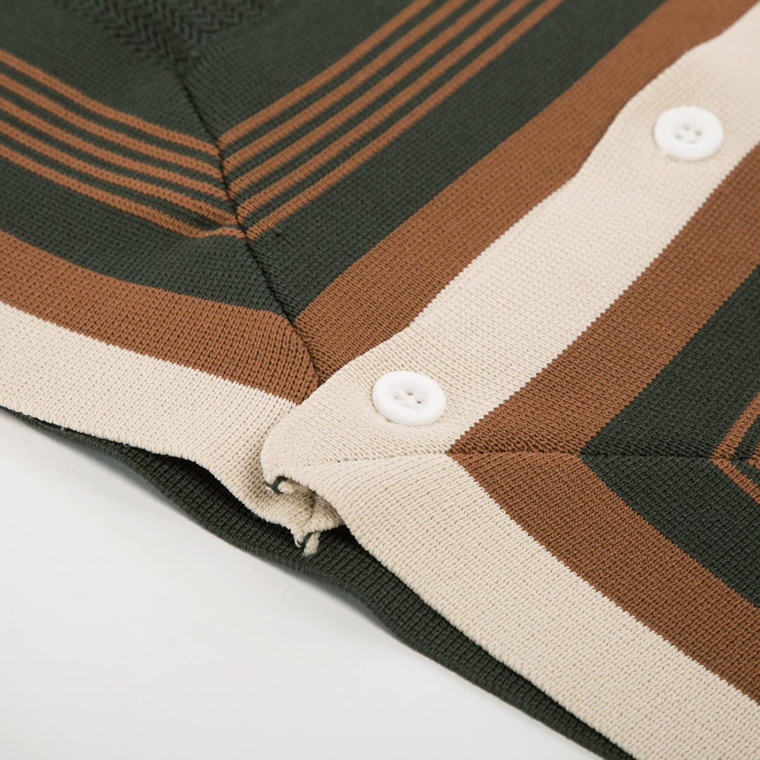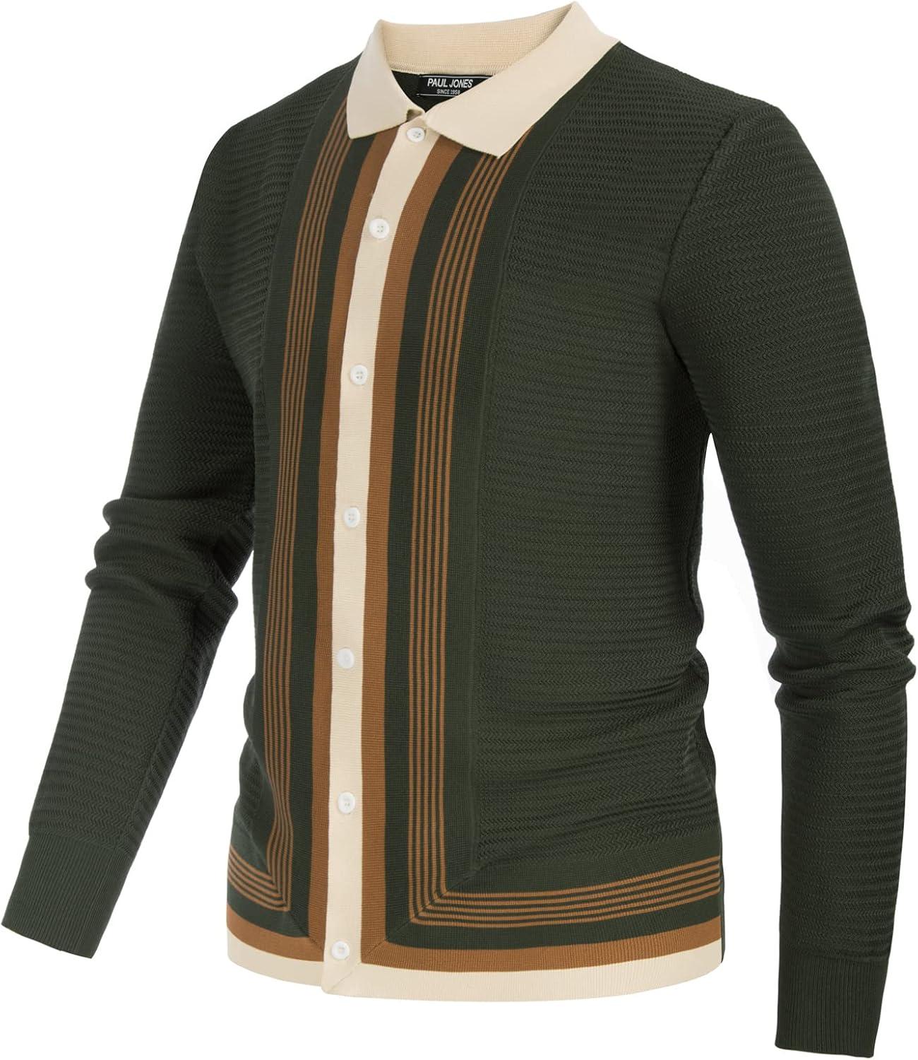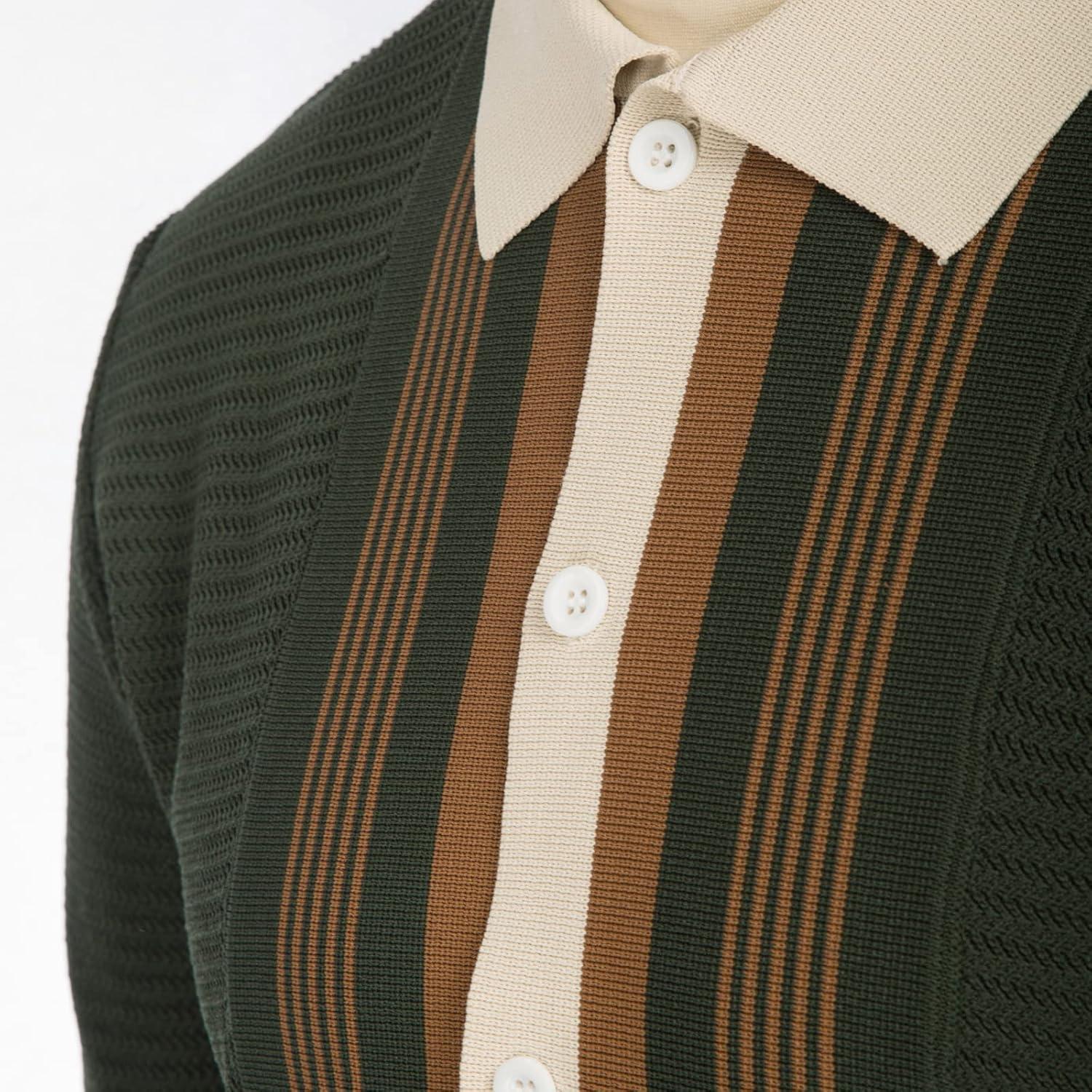 PJ PAUL JONES Men‘s Button Down Polo Shirts Striped Knitted Cardigan Sweaters(Green)