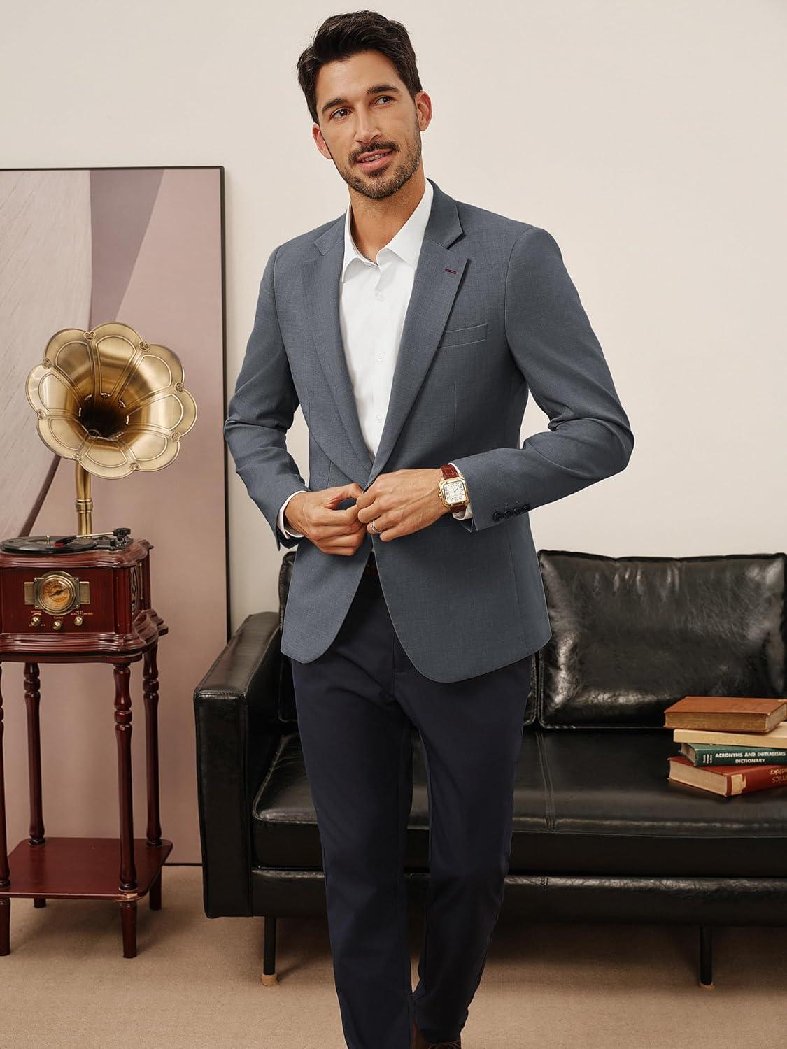 PJ PAUL JONES Men’s Casual Blazer One Button Lightweight Sport Coats Solid Notched Lapel Suit Jackets(Grey)