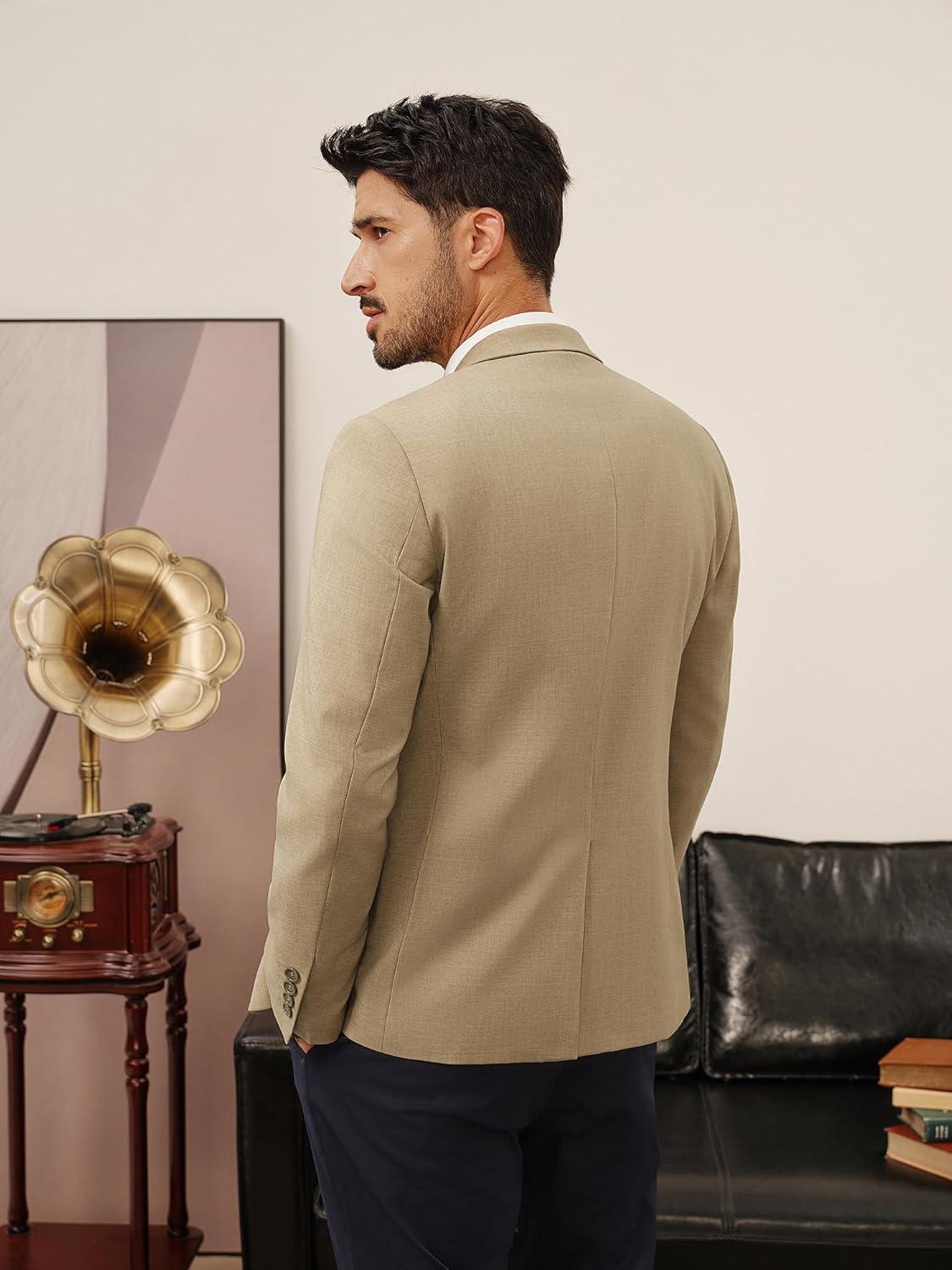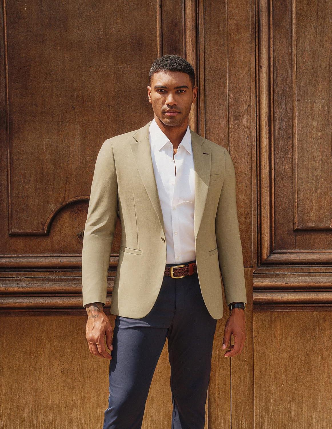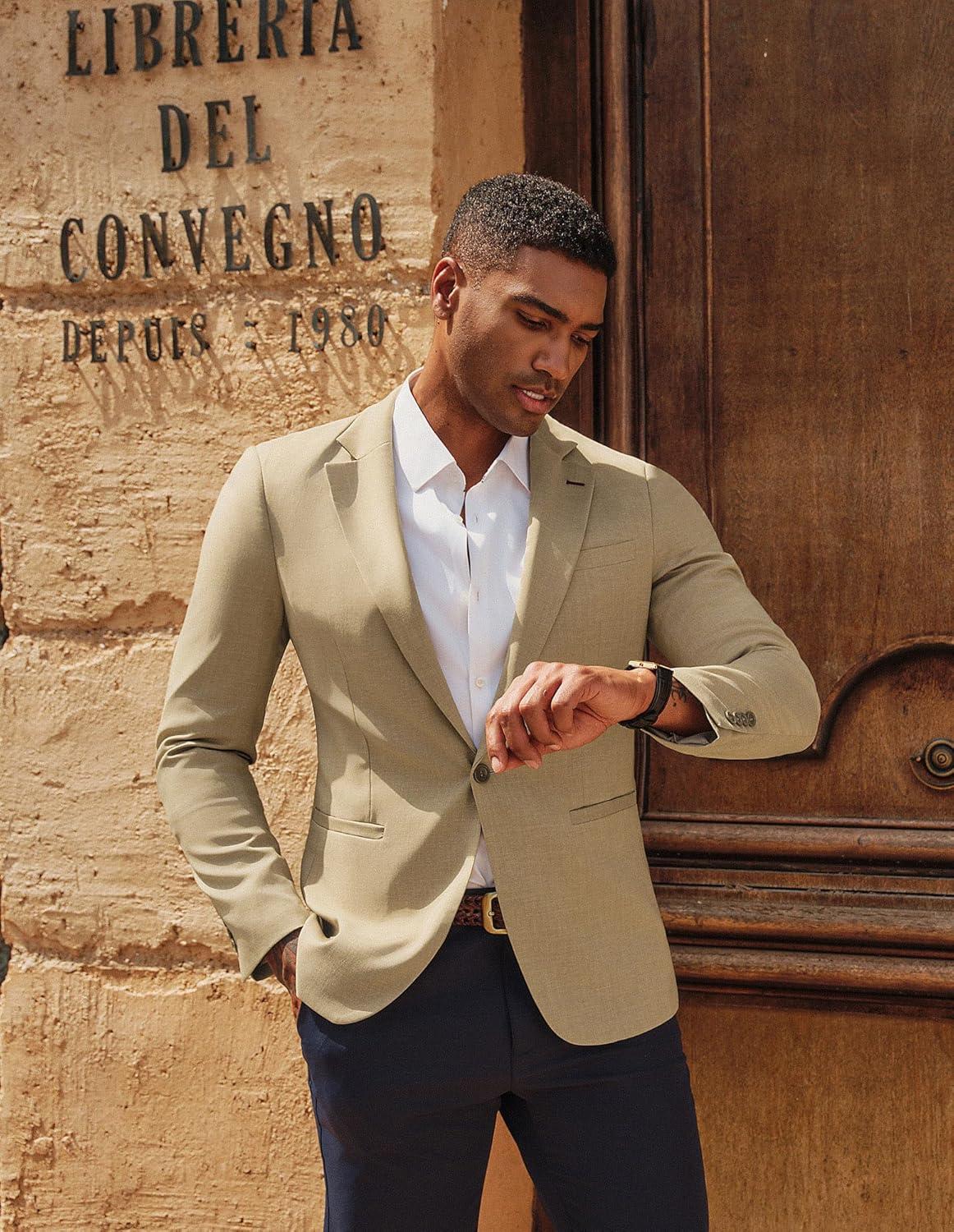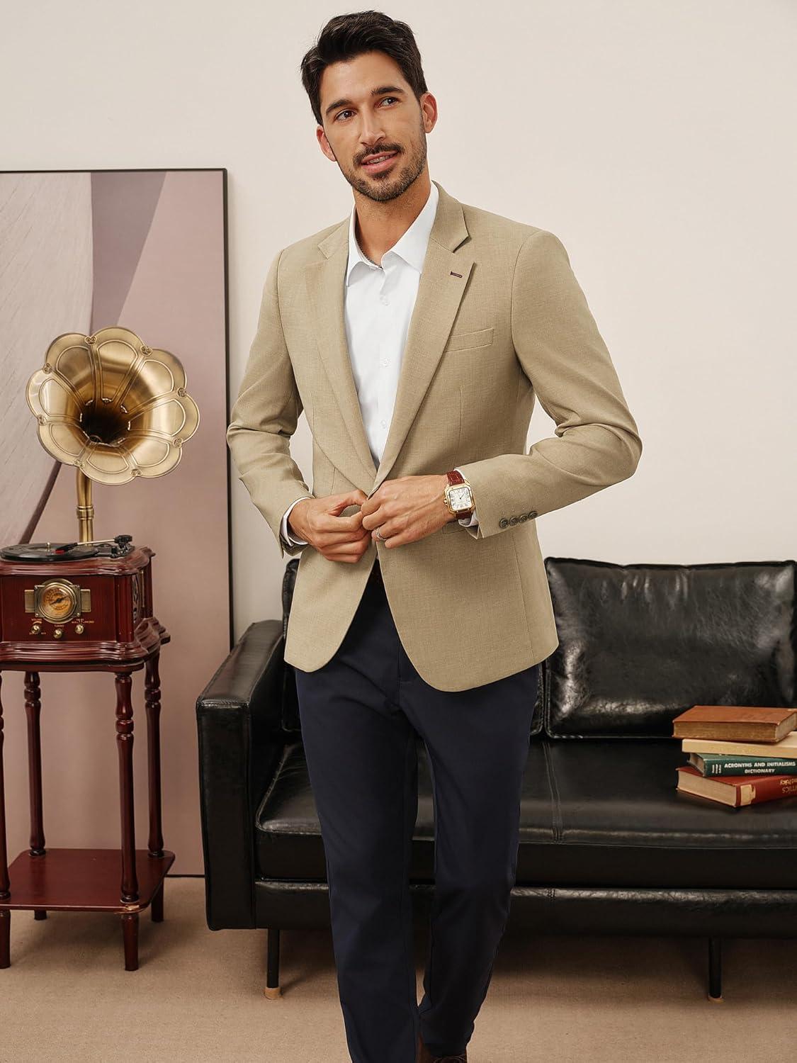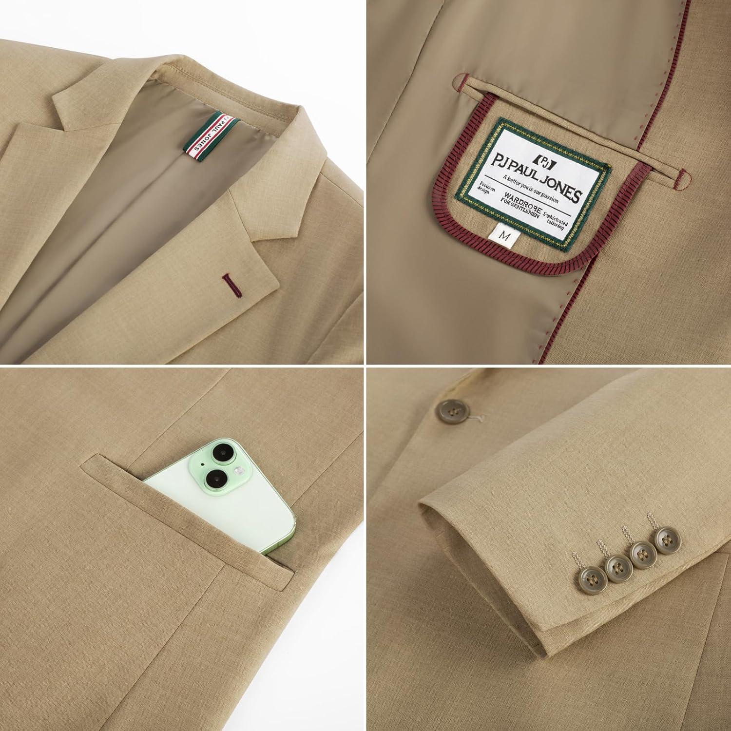 PJ PAUL JONES Men’s Casual Blazer One Button Lightweight Sport Coats Solid Notched Lapel Suit Jackets(Khaki)