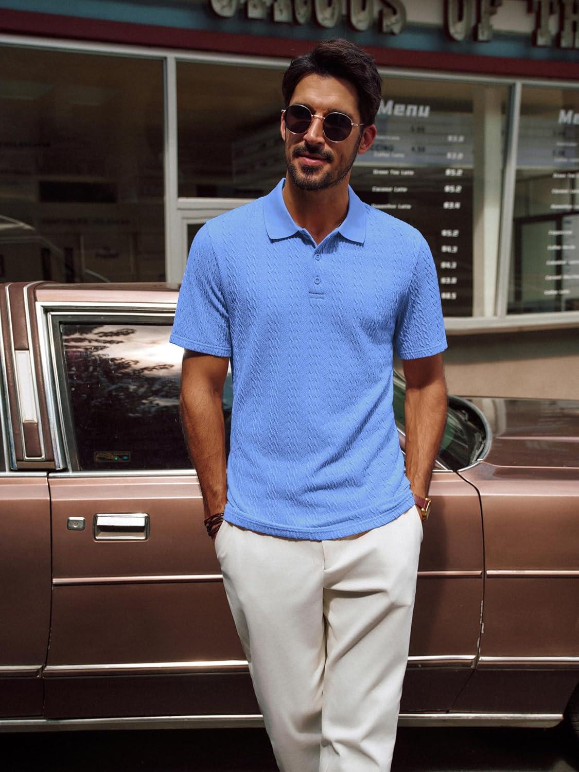 PJ PAUL JONES Mens Casual Knit Polo Shirt Short Sleeve Collared Stretchy Golf Shirts(Pure Blue)