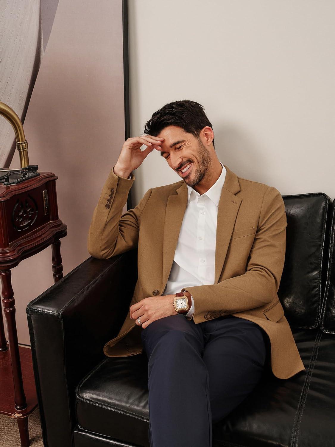 PJ PAUL JONES Men’s Casual Knit Sport Coats One Button Slim Fit Blazer Notch Lapel Solid Suit Jacket with Pockets(Brown)
