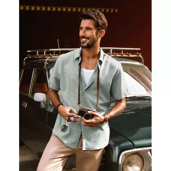 PJ PAUL JONES Mens Casual Shirts Short Sleeve Button Down Shirt Lightweight Summer Shirts(Green)