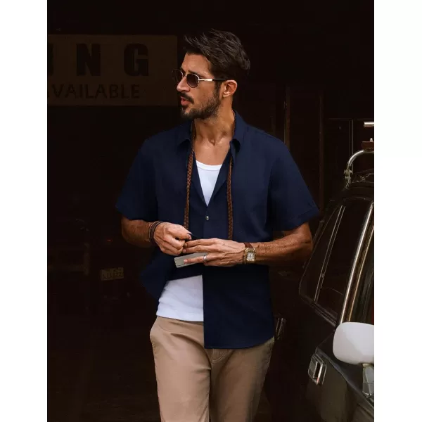 PJ PAUL JONES Mens Casual Shirts Short Sleeve Button Down Shirt Lightweight Summer Shirts(Navy Blue)