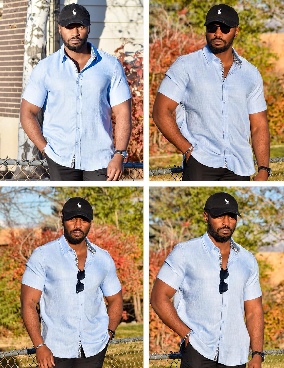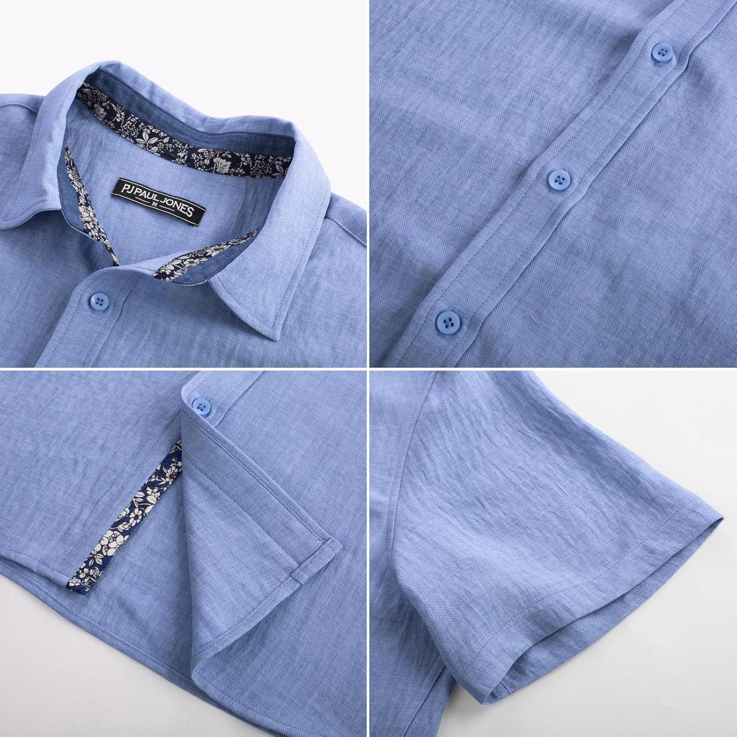 PJ PAUL JONES Men’s Casual Short Sleeve Button Down Shirt Summer Beach Wedding Shirt(Clear Blue)