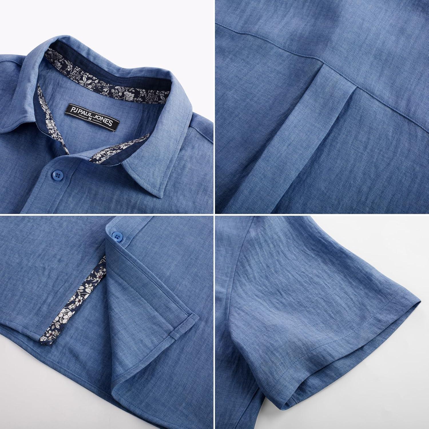 PJ PAUL JONES Men’s Casual Short Sleeve Button Down Shirt Summer Beach Wedding Shirt(Denim Blue)
