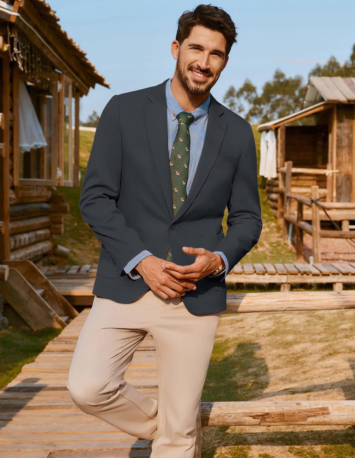 PJ PAUL JONES Men’s Casual Sport Coats One Button Slim Fit Blazer Lightweight Notched Lapel Solid Suit Jacket(Dark Grey)