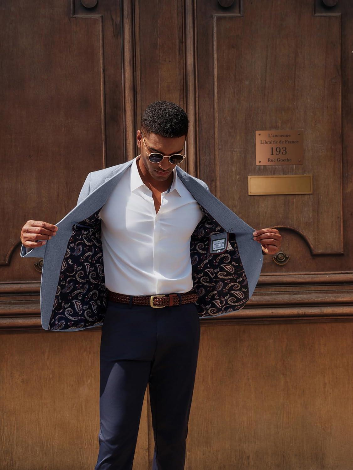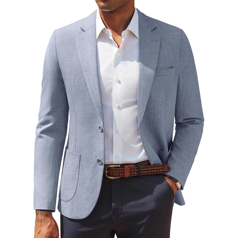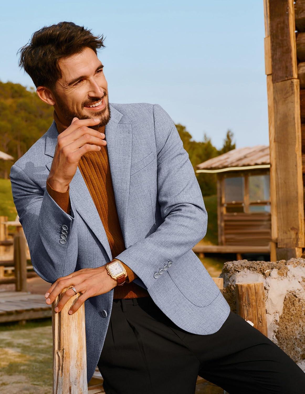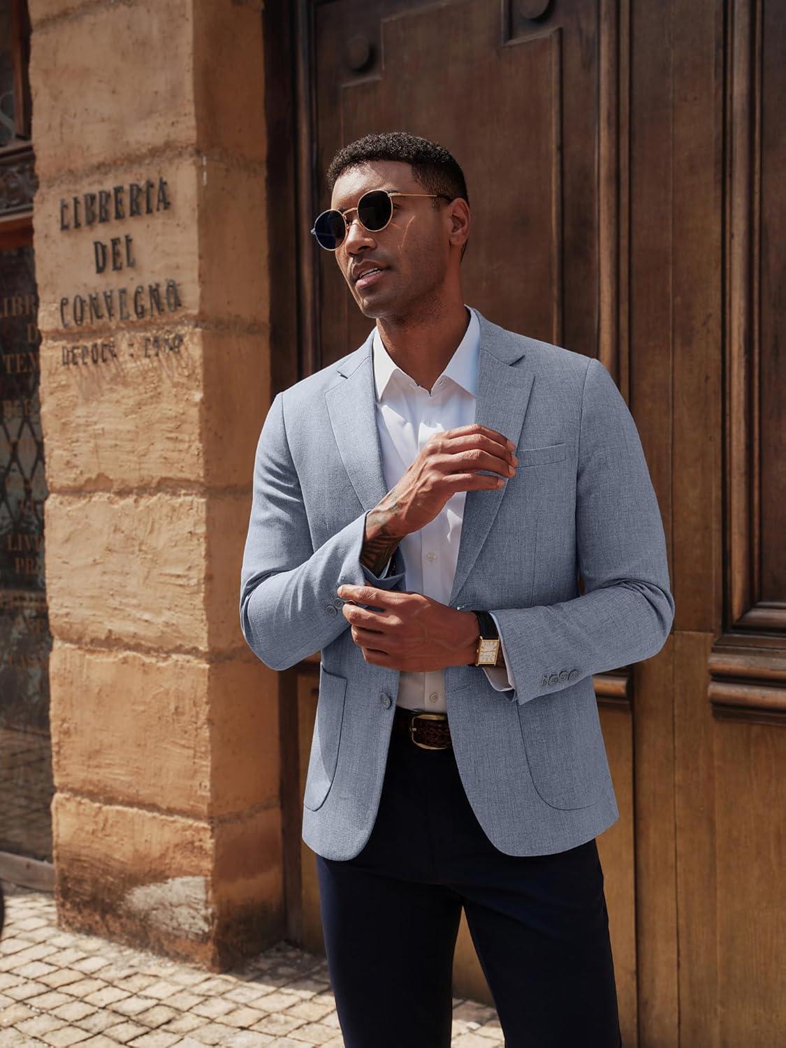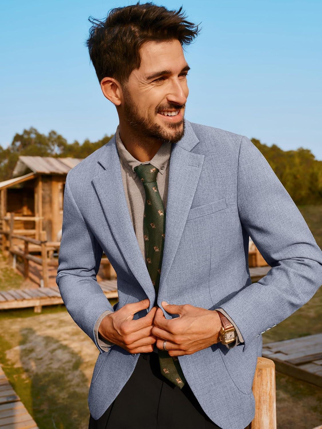 PJ PAUL JONES Mens Casual Sport Coats Two Button Slim Fit Blazer Lightweight Pattern Lined Notch Lapel Suit Jacket(Blue Grey)
