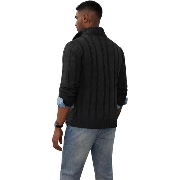 PJ PAUL JONES Men’s Casual Stand Collar Cardigan Button Down Cable Knitted Sweater(Black Grey)