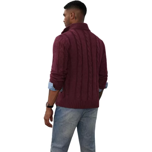 PJ PAUL JONES Men’s Casual Stand Collar Cardigan Button Down Cable Knitted Sweater(Wine)