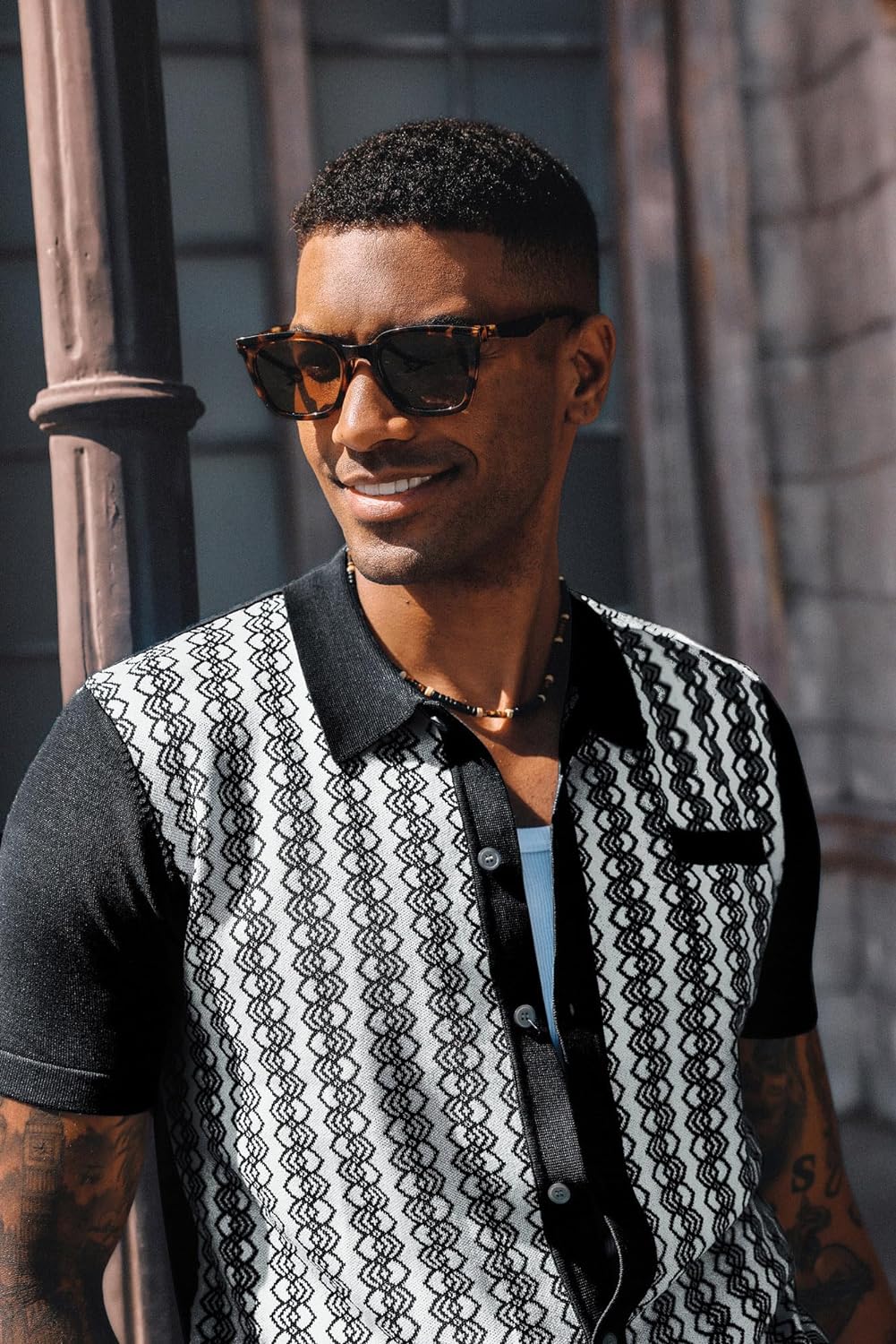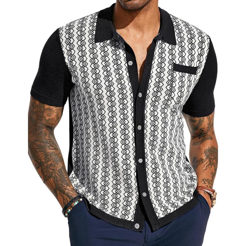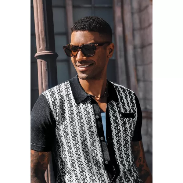 PJ PAUL JONES Men’s Contrast 70s Vintage Polo Shirts Short Sleeve Knitwear(Z-black)