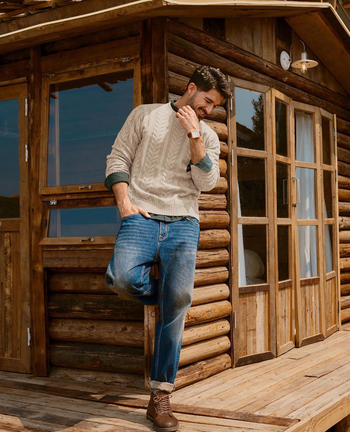 Score big savings on PJ PAUL JONES Mens Crewneck Sweater Cable Knit Pullover Sweaters Textured Long Sleeve Winter Sweaters(Apricot) during our back-to-school sale. Limited quantities available.