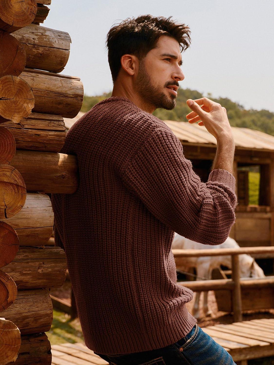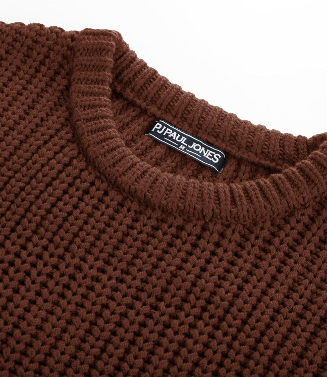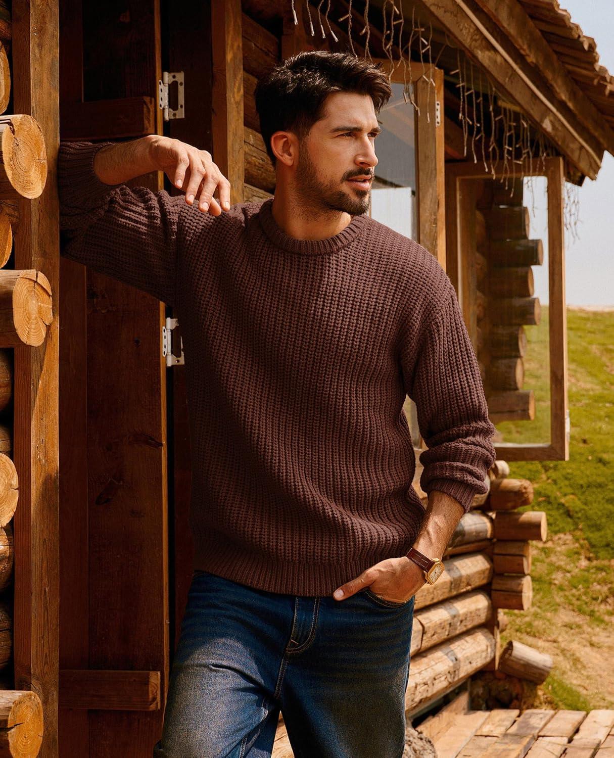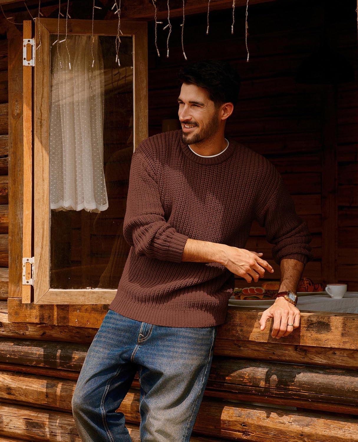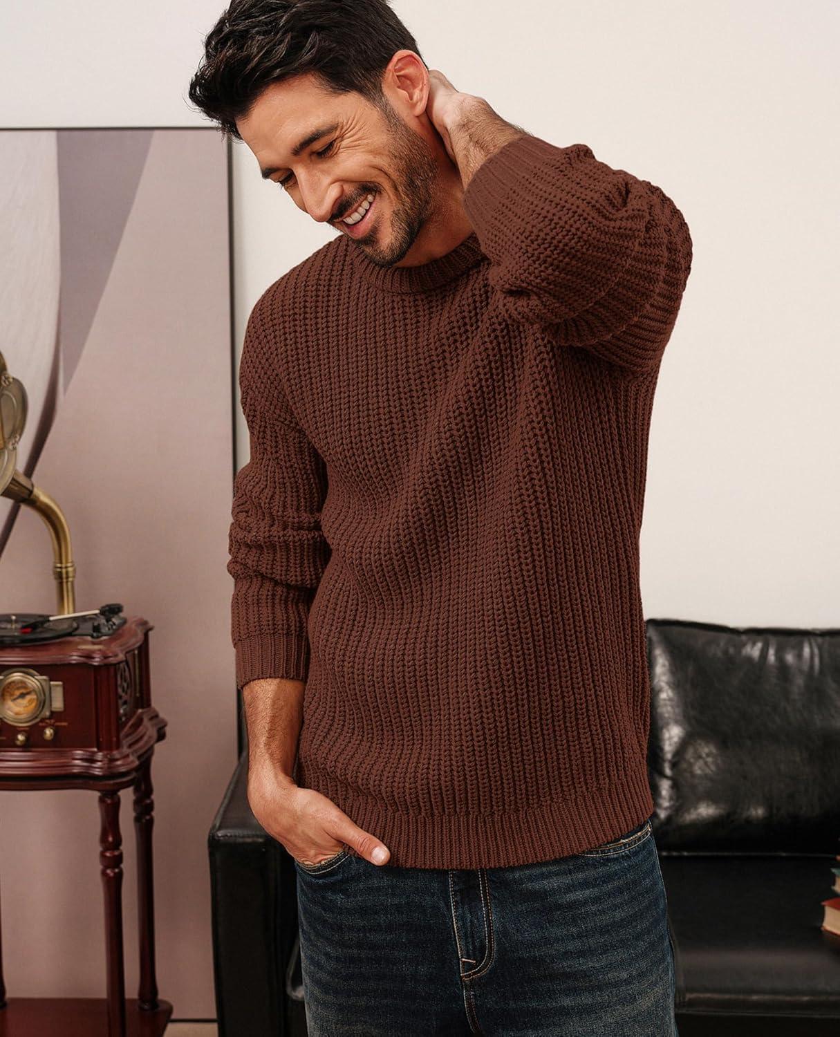 PJ PAUL JONES Mens Crewneck Sweater Casual Textured Knitted Pullover Long Sleeves Pullover Sweaters Winter Sweater(Coffee)