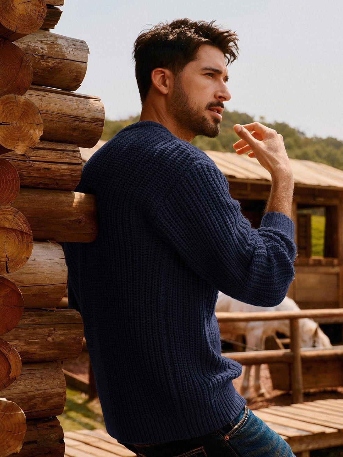 PJ PAUL JONES Men‘s Crewneck Sweater Knitted Textured Casual Pullover for Winter(Navy Blue)