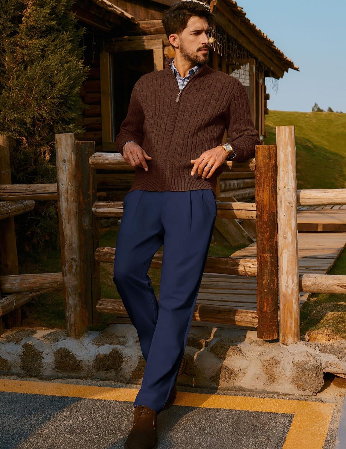 PJ PAUL JONES Mens Dress Pants Vintage Pleated Tapered Cropped Trousers Extended Waist Dress Pant Casual Slacks(Brown)