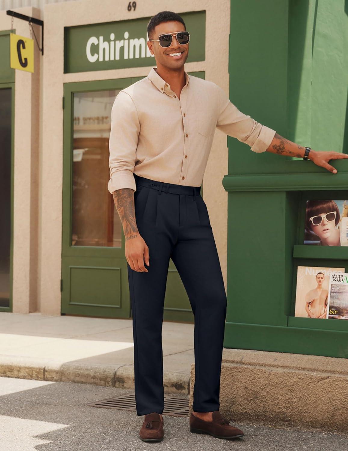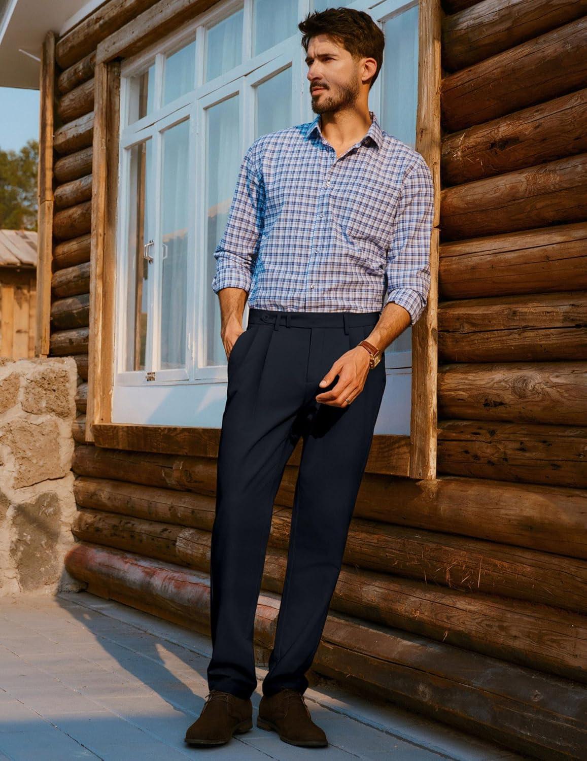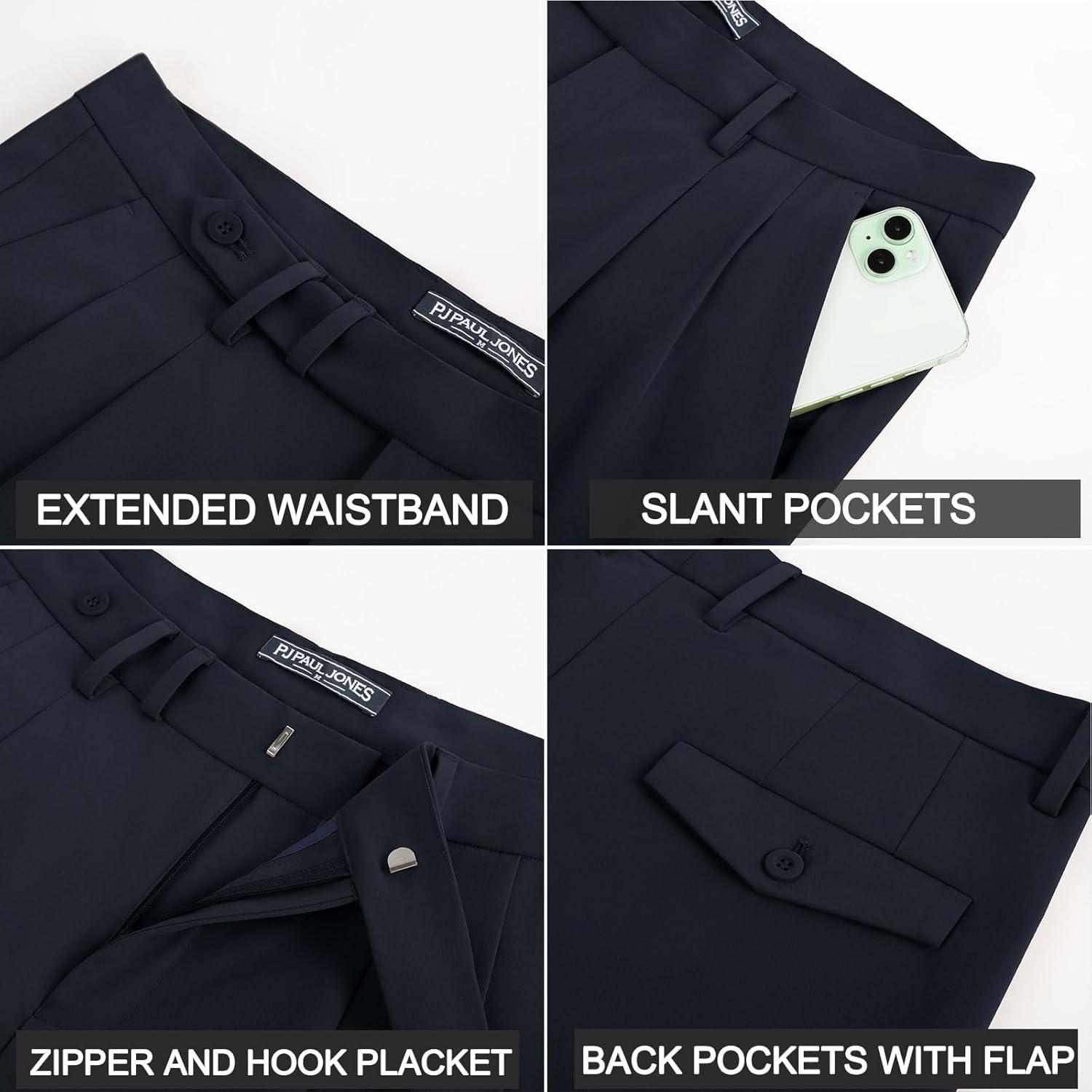Don’t miss out on our limited-time offer: buy PJ PAUL JONES Mens Dress Pants Vintage Pleated Tapered Cropped Trousers Extended Waist Dress Pant Casual Slacks(Navy Blue), get a free {accessory}!