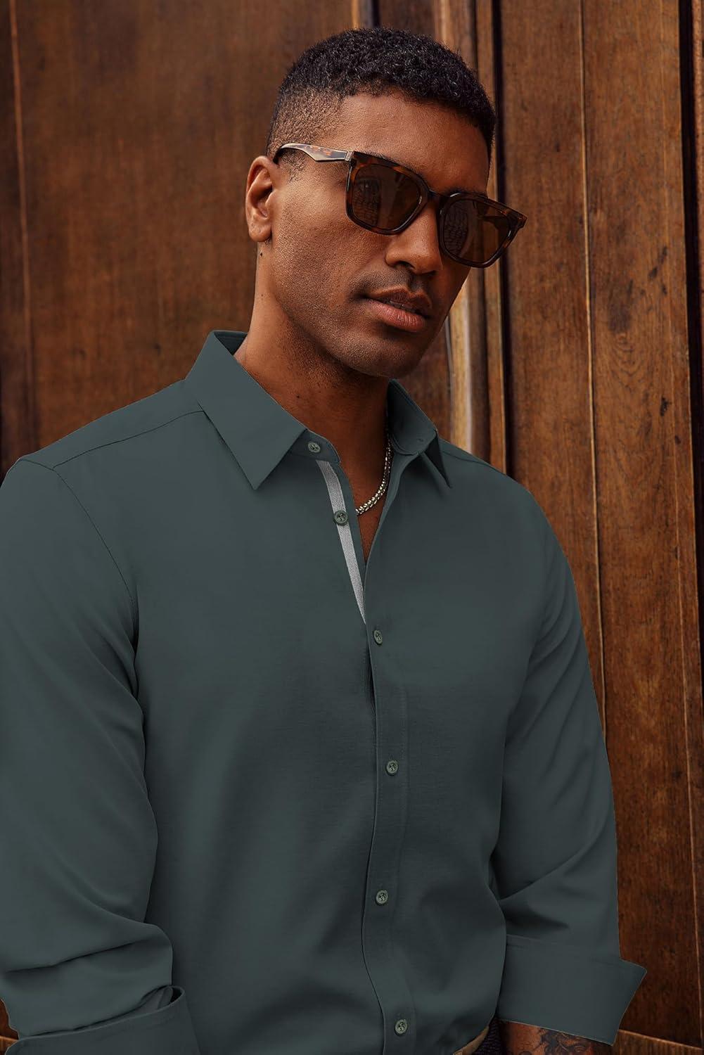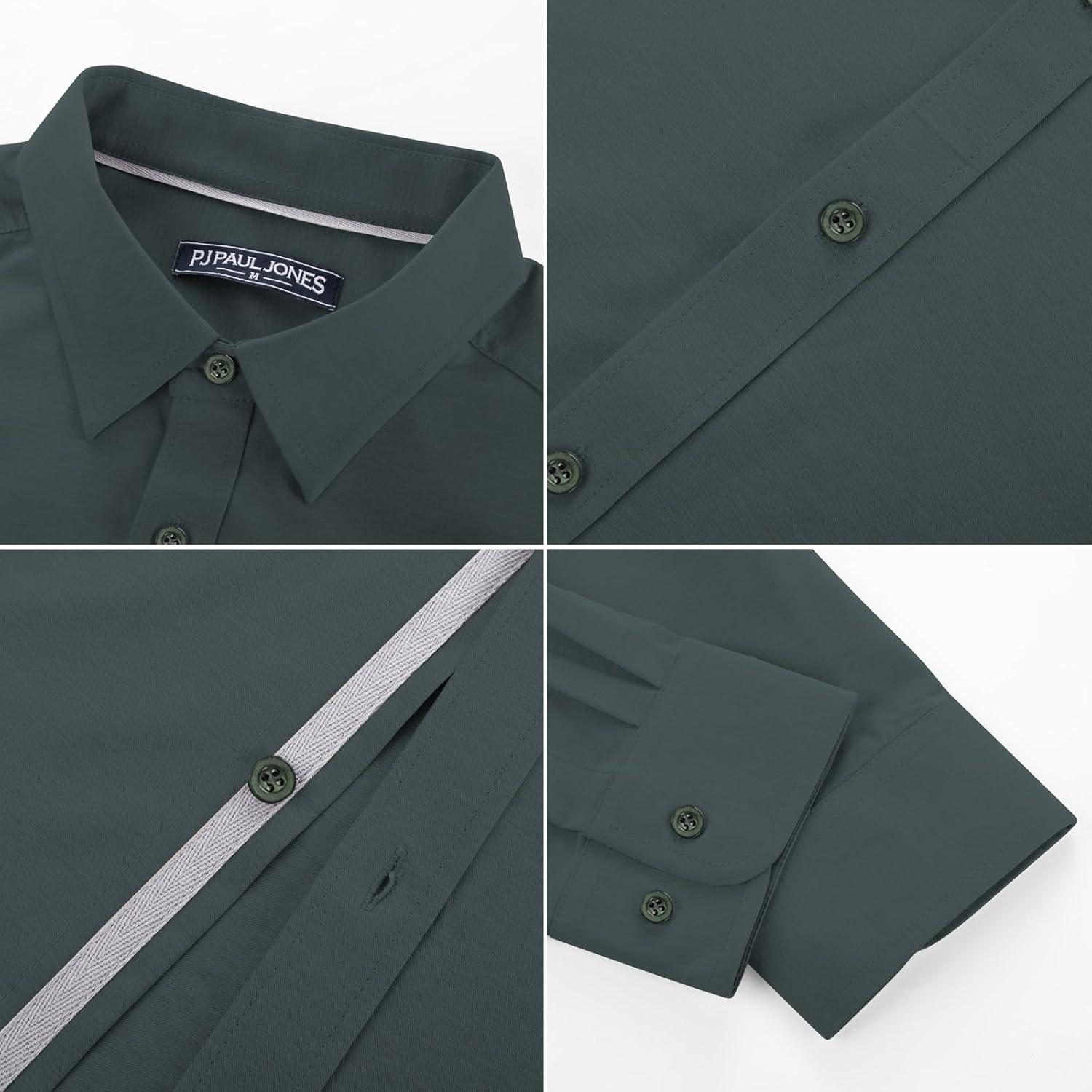 PJ PAUL JONES Mens Dress Shirts Wrinkle Free Stretch Button Down Shirt Casual Long Sleeve Business Shirts(Green)