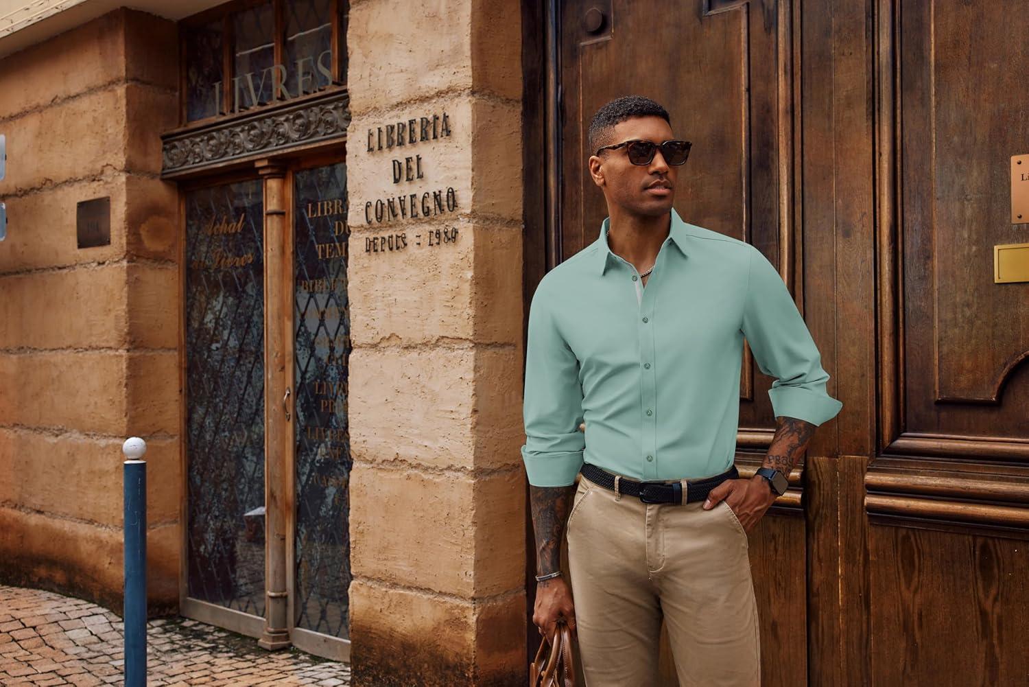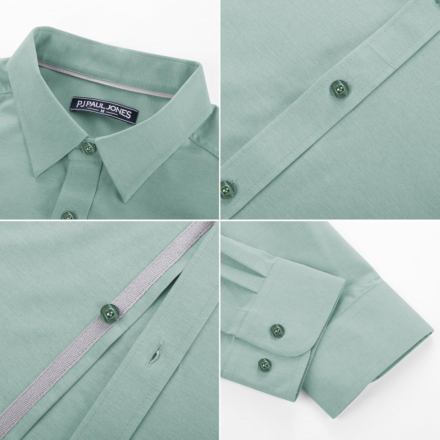 PJ PAUL JONES Mens Dress Shirts Wrinkle Free Stretch Button Down Shirt Casual Long Sleeve Business Shirts(Green)