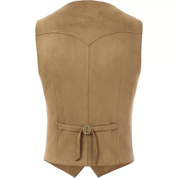 PJ PAUL JONES Mens Faux Suede Leathr Suit Vest Western Cowboy Dress Vests with Pockets(Khaki)
