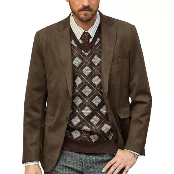 PJ PAUL JONES Mens Blazer Jacket Faux Leather Suit Jacket Casual 2 Buttons Suede Sport Blazer Coat with Pockets(Dark Brown)