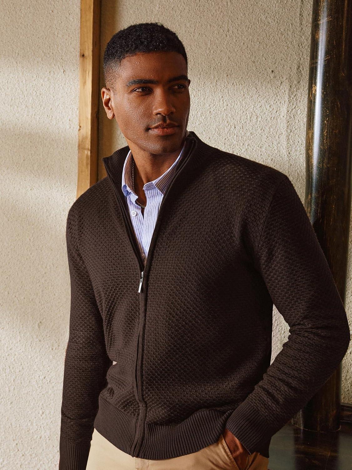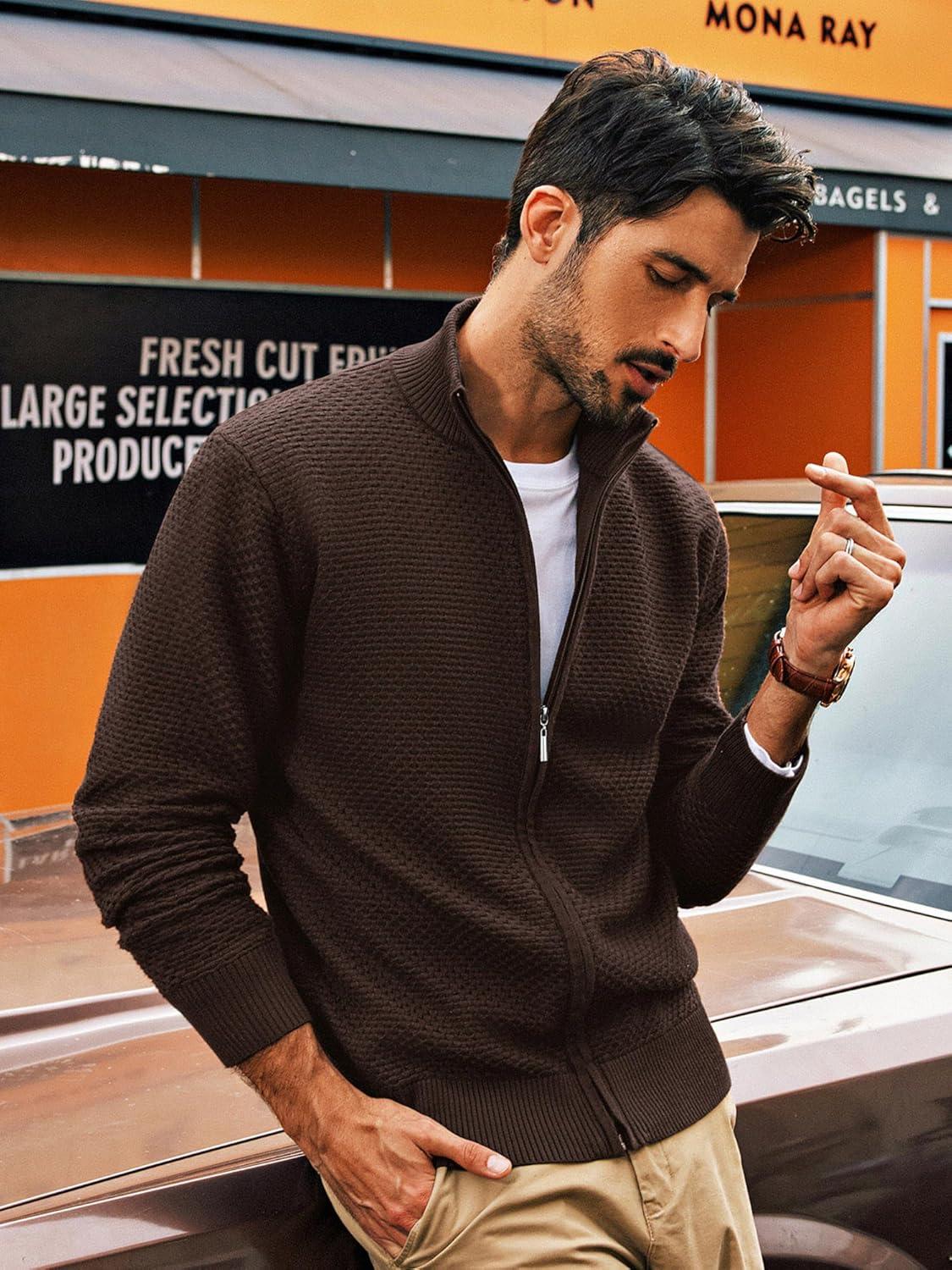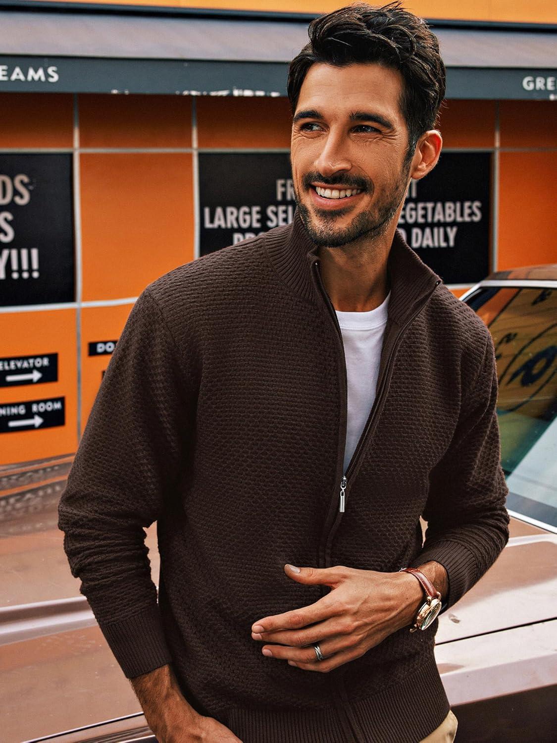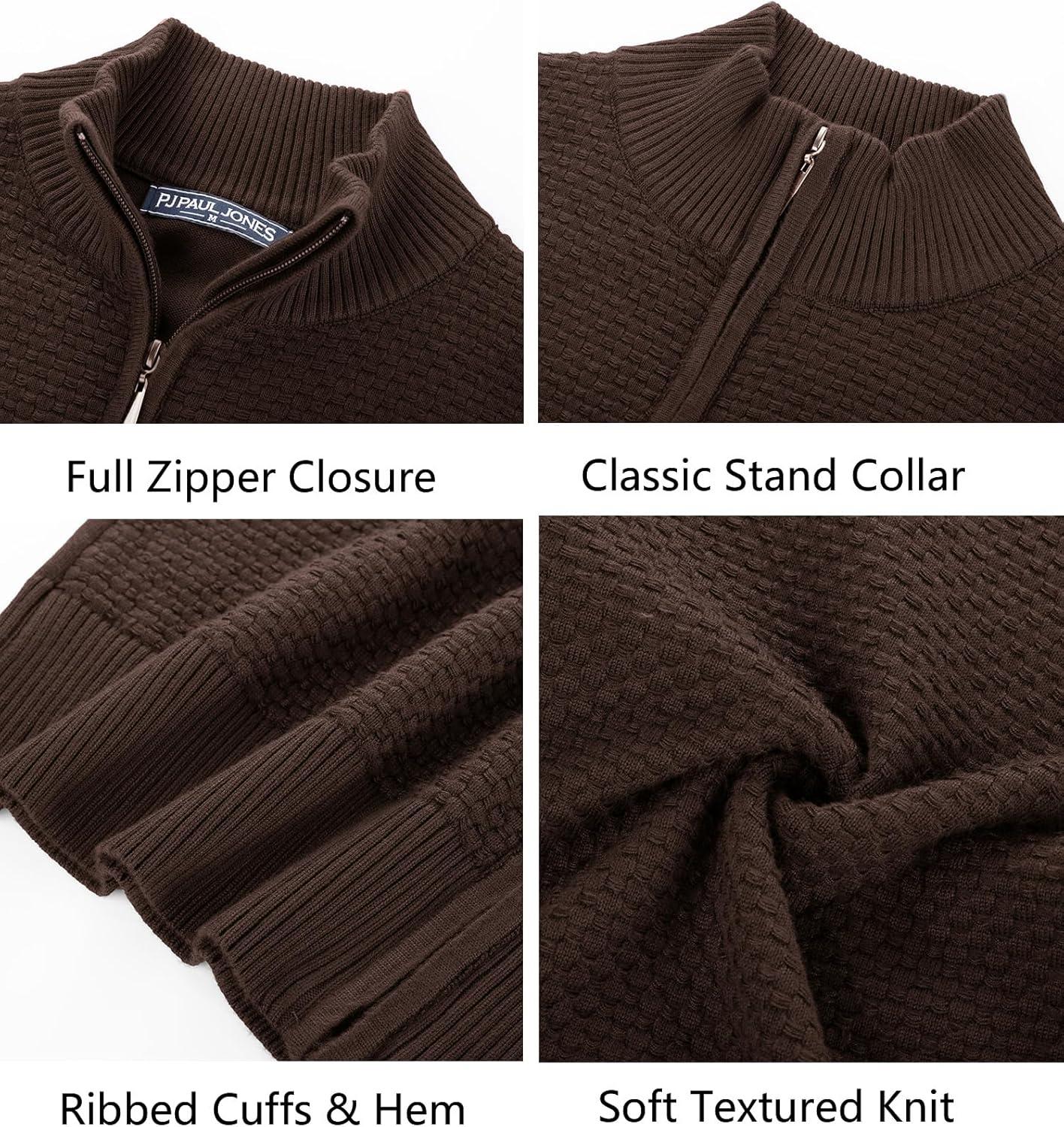 PJ PAUL JONES Men’s Full Zip Cardigan Sweaters Casual Stand Collar Cardigan Slim Fit Knitted Sweater(Coffee)