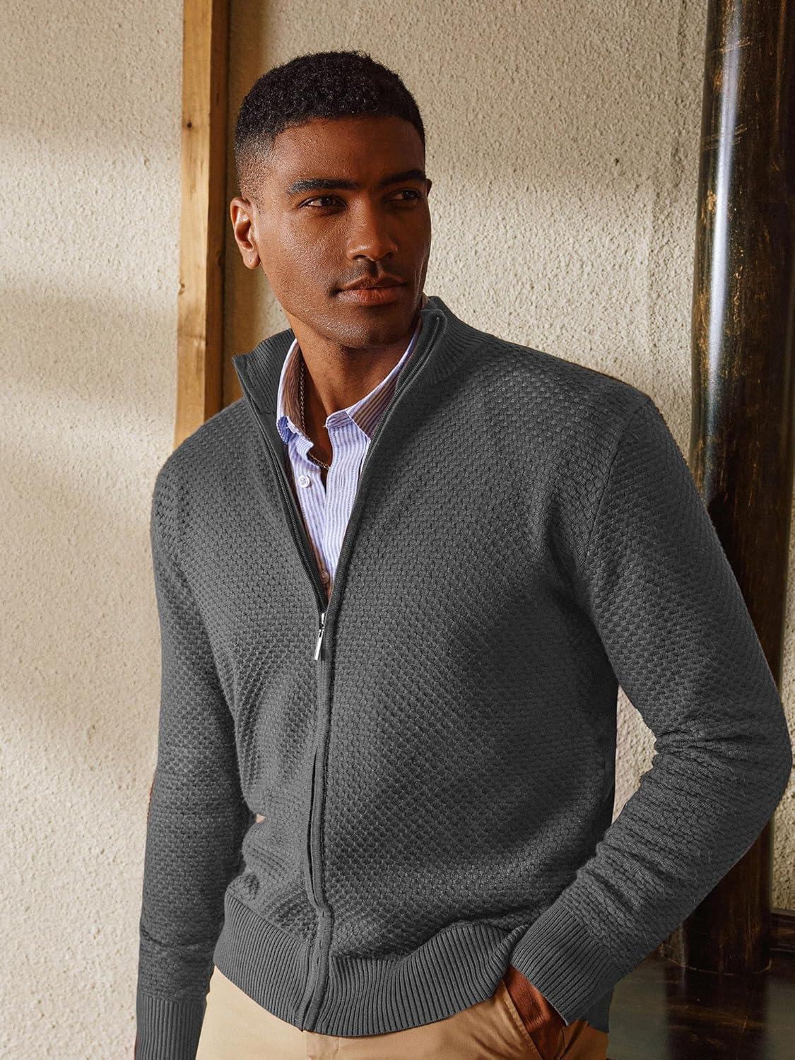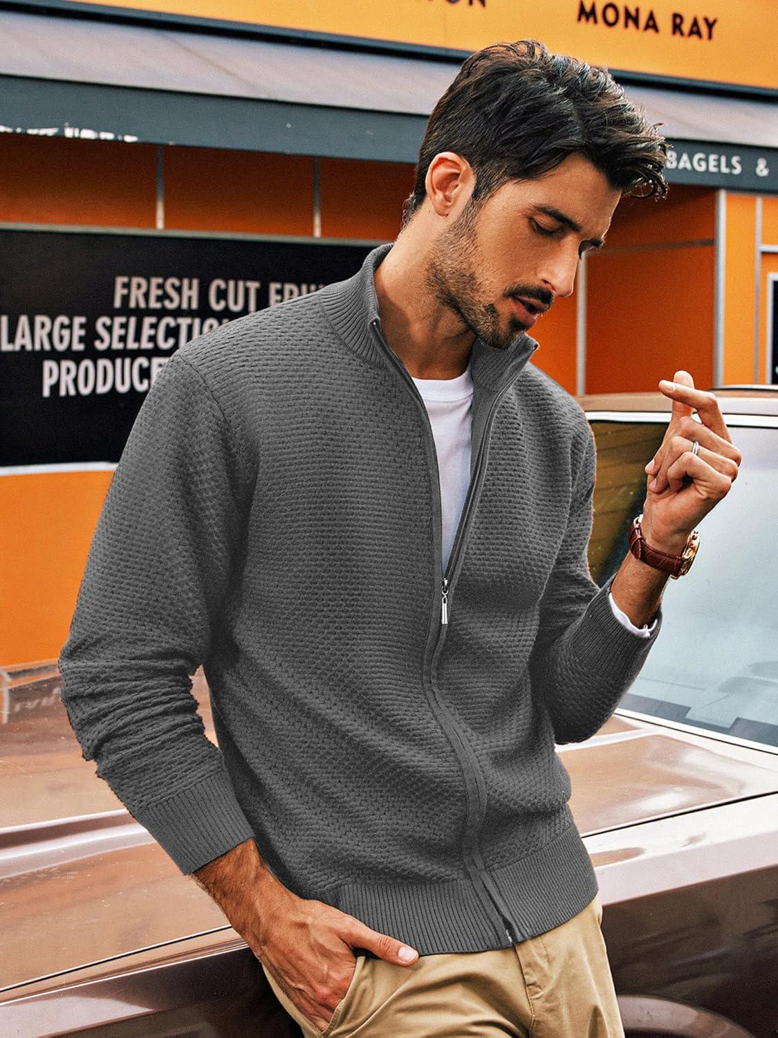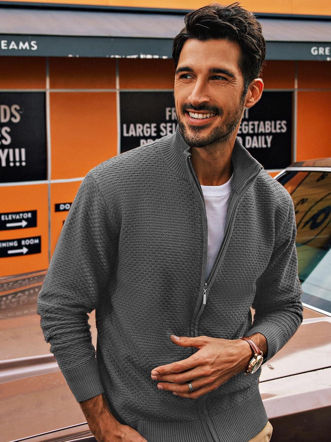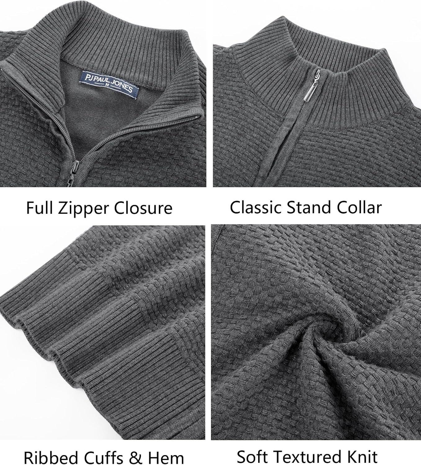 PJ PAUL JONES Men’s Full Zip Cardigan Sweaters Casual Stand Collar Cardigan Slim Fit Knitted Sweater(Dark Grey)