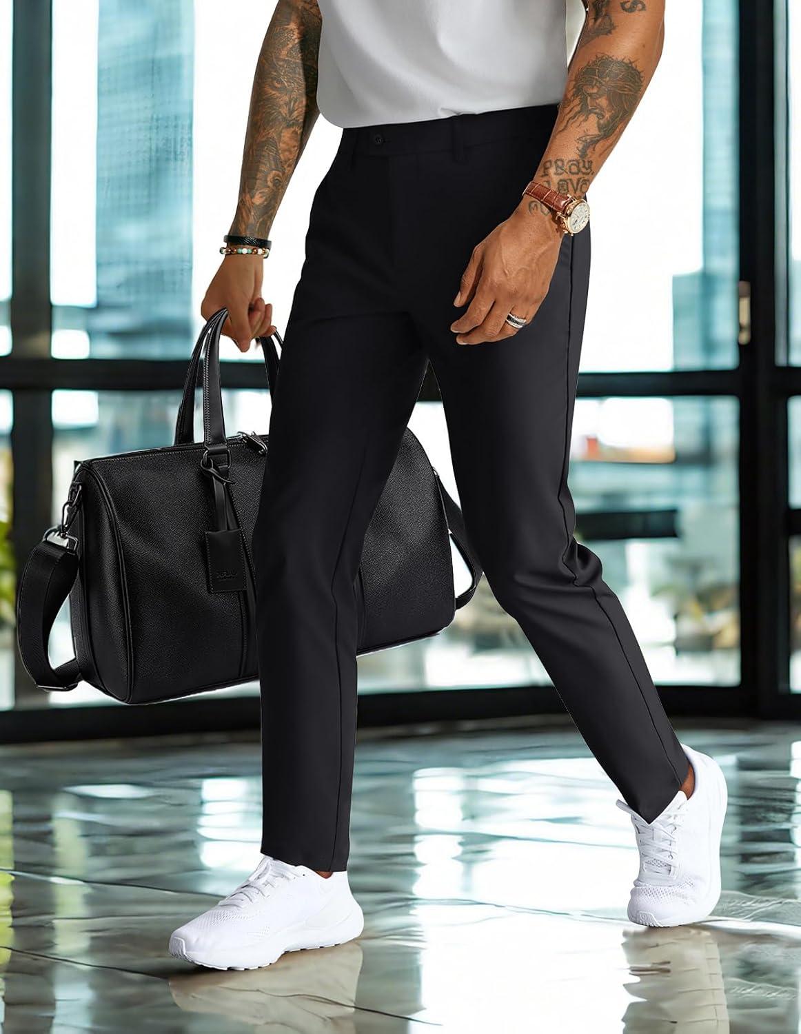 PJ PAUL JONES Mens golf pants slim fit 4-way stretch lightweight comfy golf pants business casual wrinkle-free dress pants with elastic waist and pockets quick dry breathable taperedd golf joggers for office work workout travel hiking fishing running