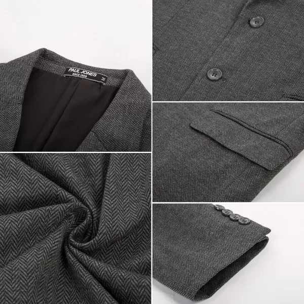 PJ Paul Jones Men’s Herringbone Blazer Jacket Lightweight Casual Knit Sport Coat(Black Grey)