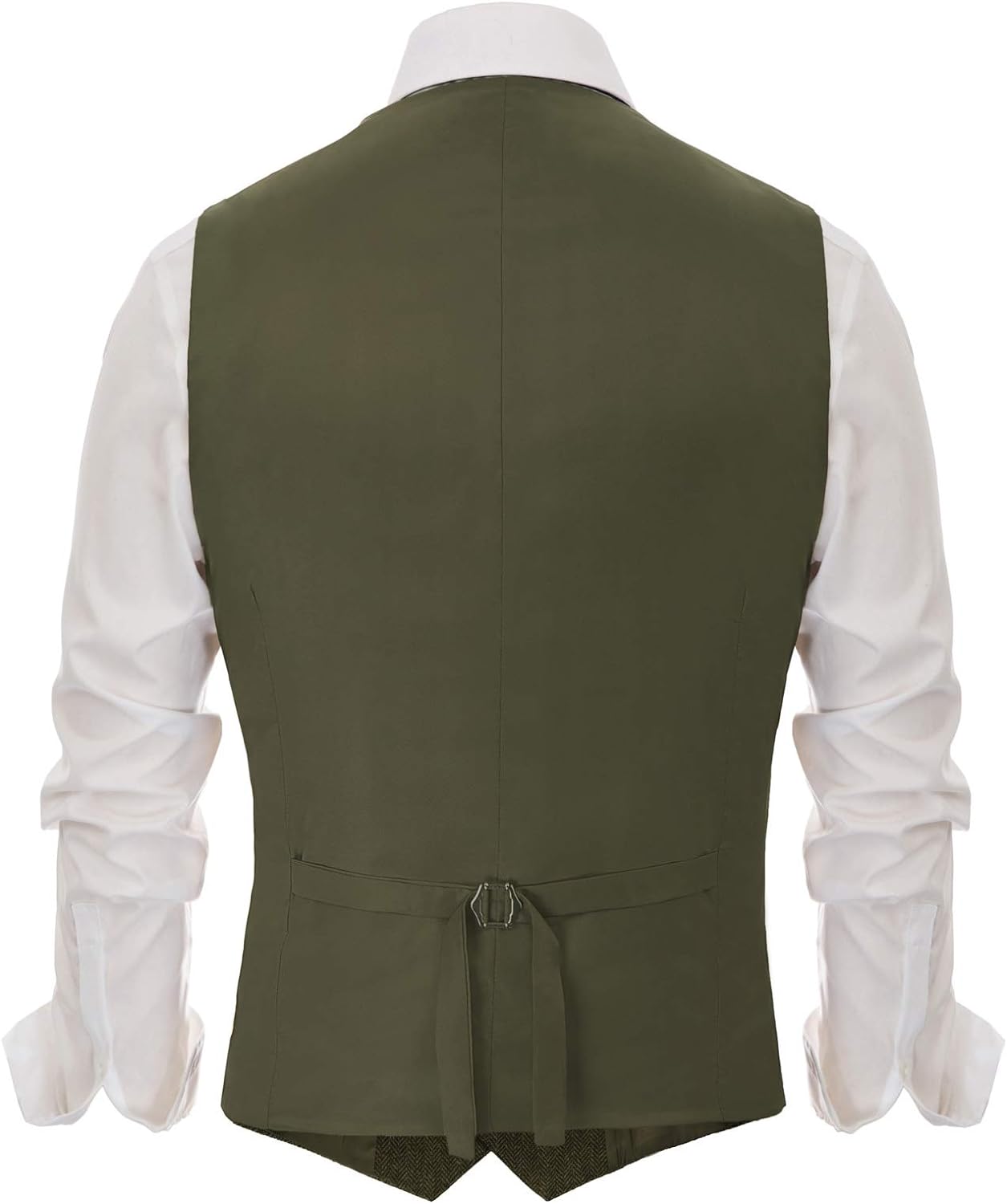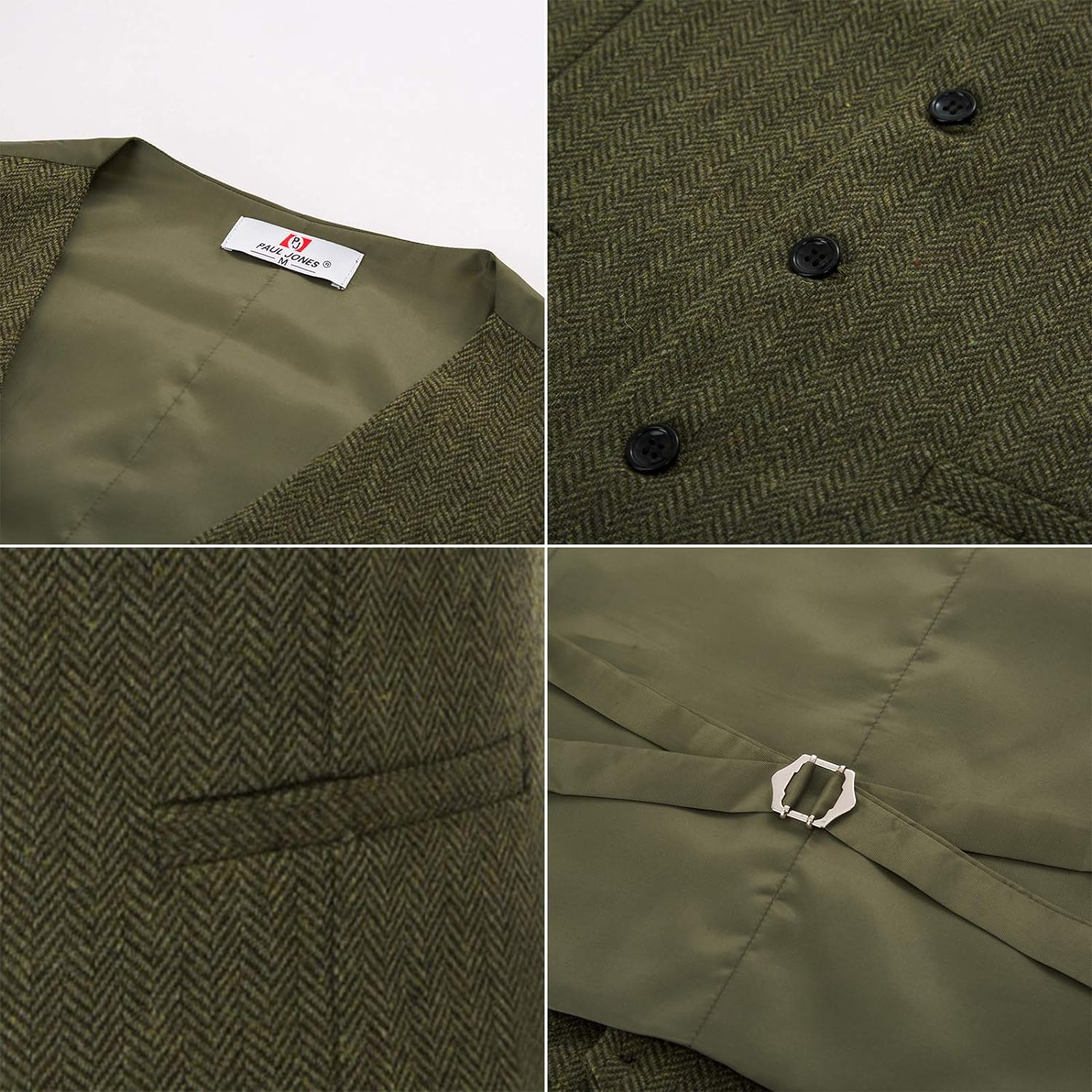 PJ PAUL JONES Men’s Herringbone Tweed Suit Vest Casual Wool Blend Waistcoat(Army Green)