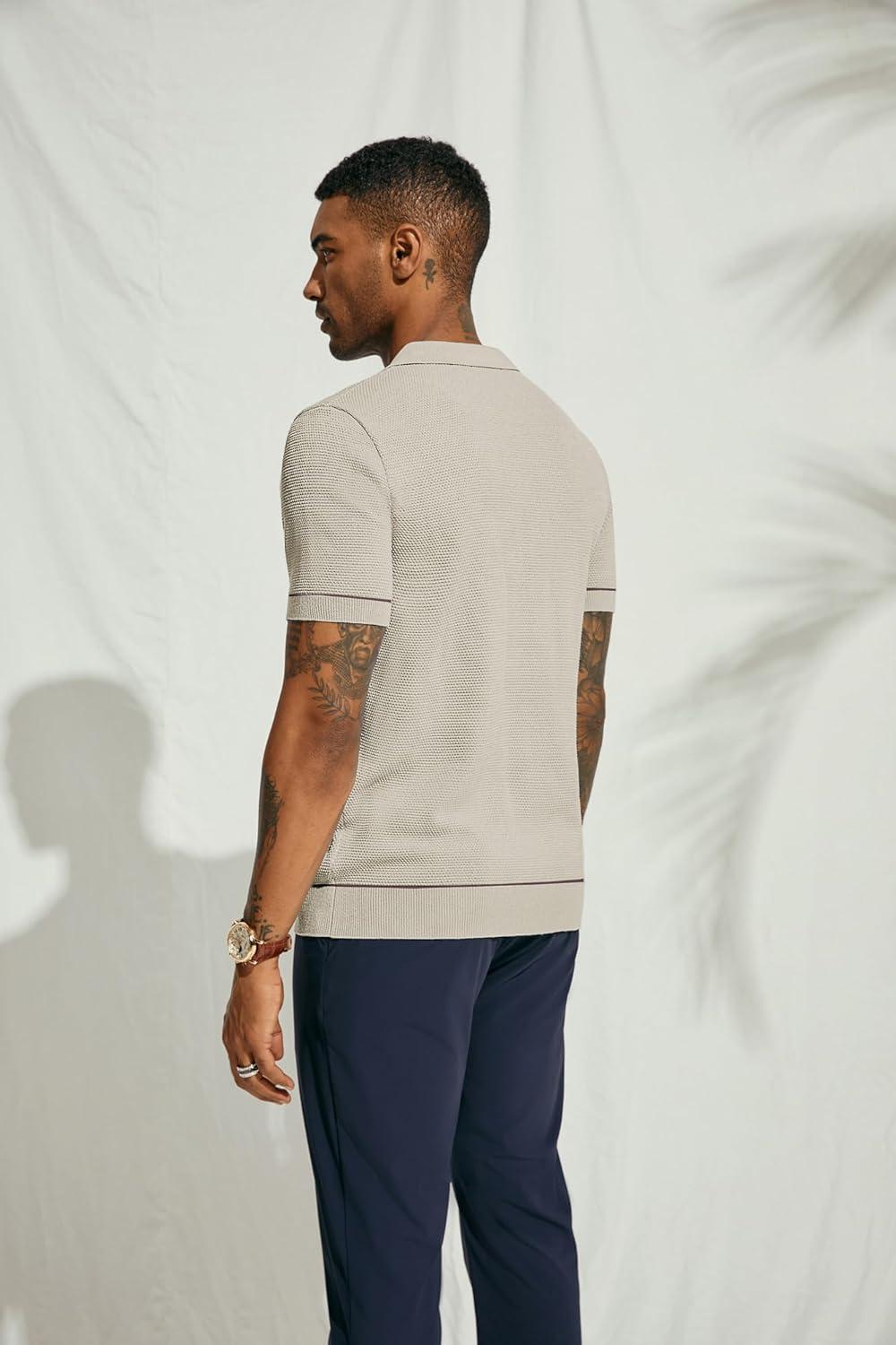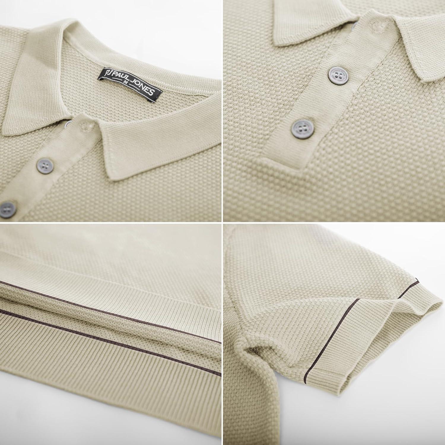 PJ PAUL JONES Mens Knit Polo Shirts Short Sleeve Textured Polo Shirts Sretchy Regular Fit(Apricot)