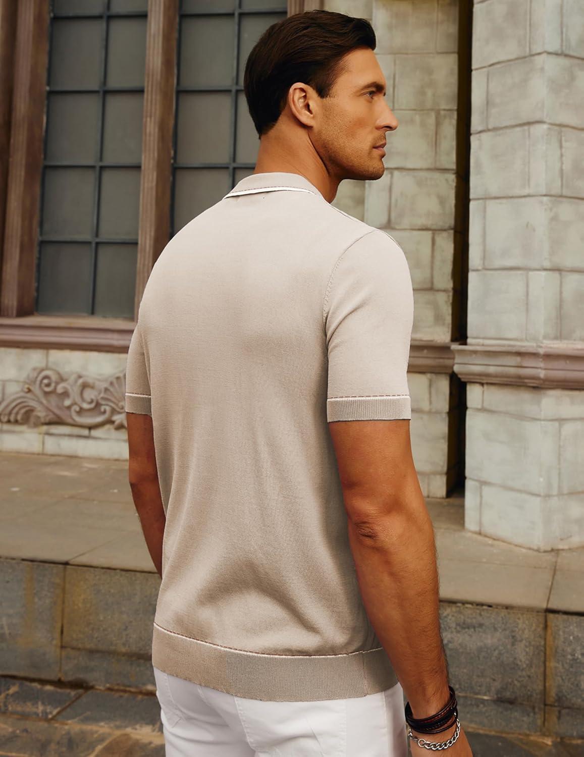 PJ PAUL JONES Mens Knit Shirts Vintage Retro Short Sleeve Button Down Vacation Polo Shirts(Apricot)