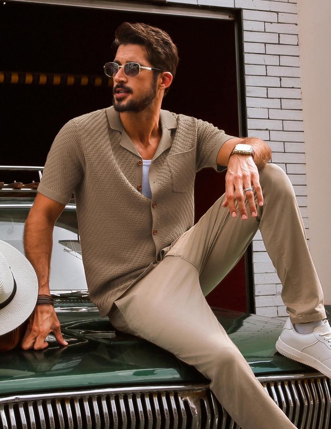 imagePJ PAUL JONES Mens Knit Shirts Vintage Retro Short Sleeve Button Down Vacation Polo ShirtsApricot