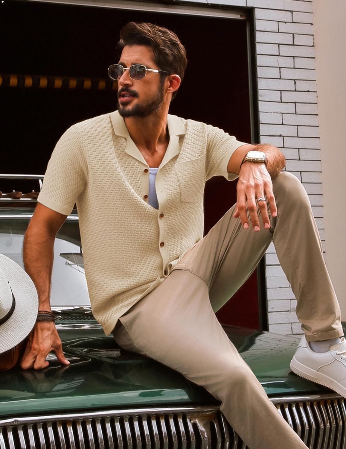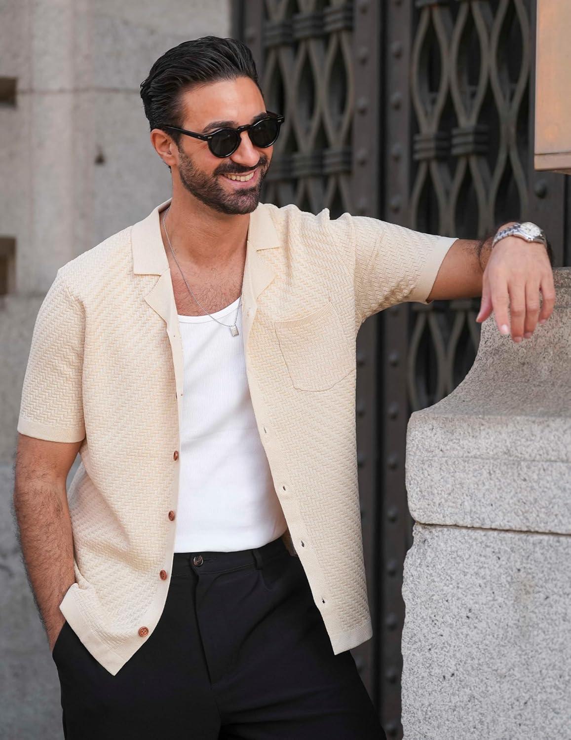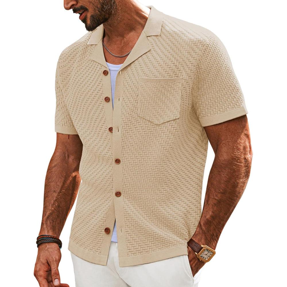 PJ PAUL JONES Mens Knit Shirts Vintage Retro Short Sleeve Button Down Vacation Polo Shirts(Light Apricot37)