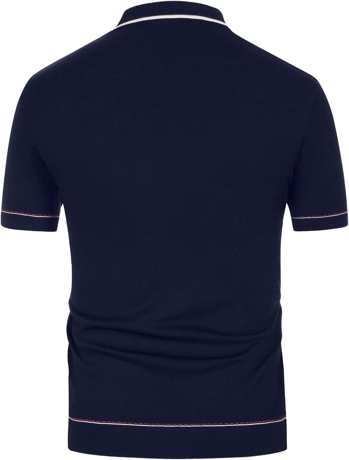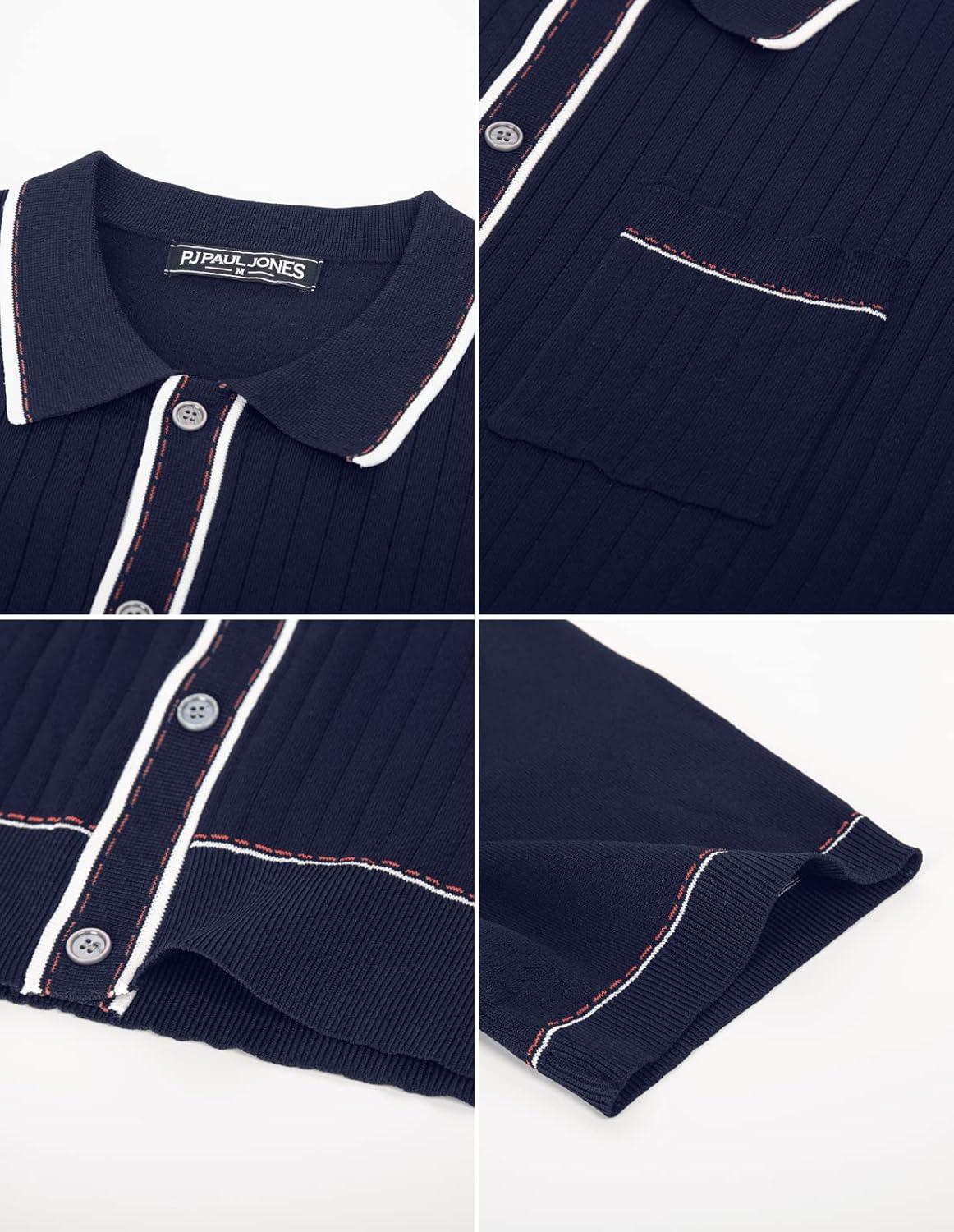 PJ PAUL JONES Mens Knit Shirts Vintage Retro Short Sleeve Button Down Vacation Polo Shirts(Navy Blue)