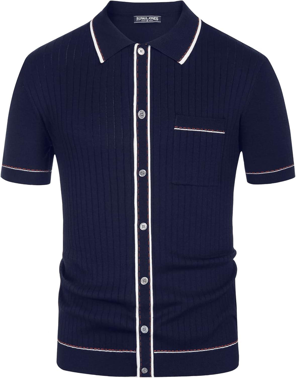 Get up to 50% off on PJ PAUL JONES Mens Knit Shirts Vintage Retro Short Sleeve Button Down Vacation Polo Shirts(Navy Blue) styles during our spring sale event.