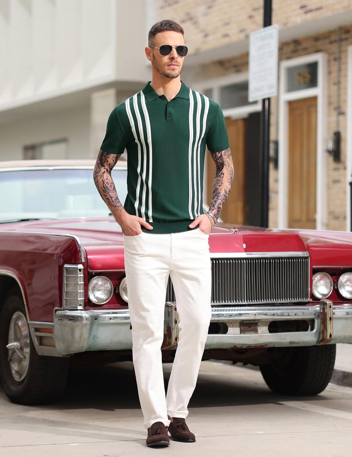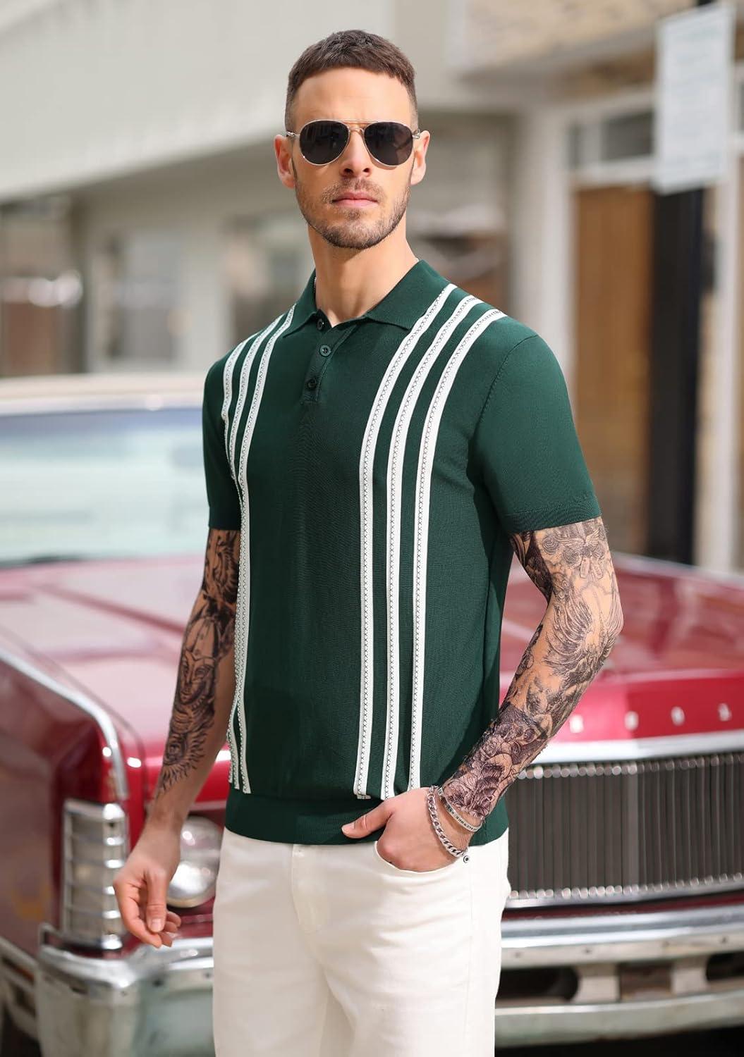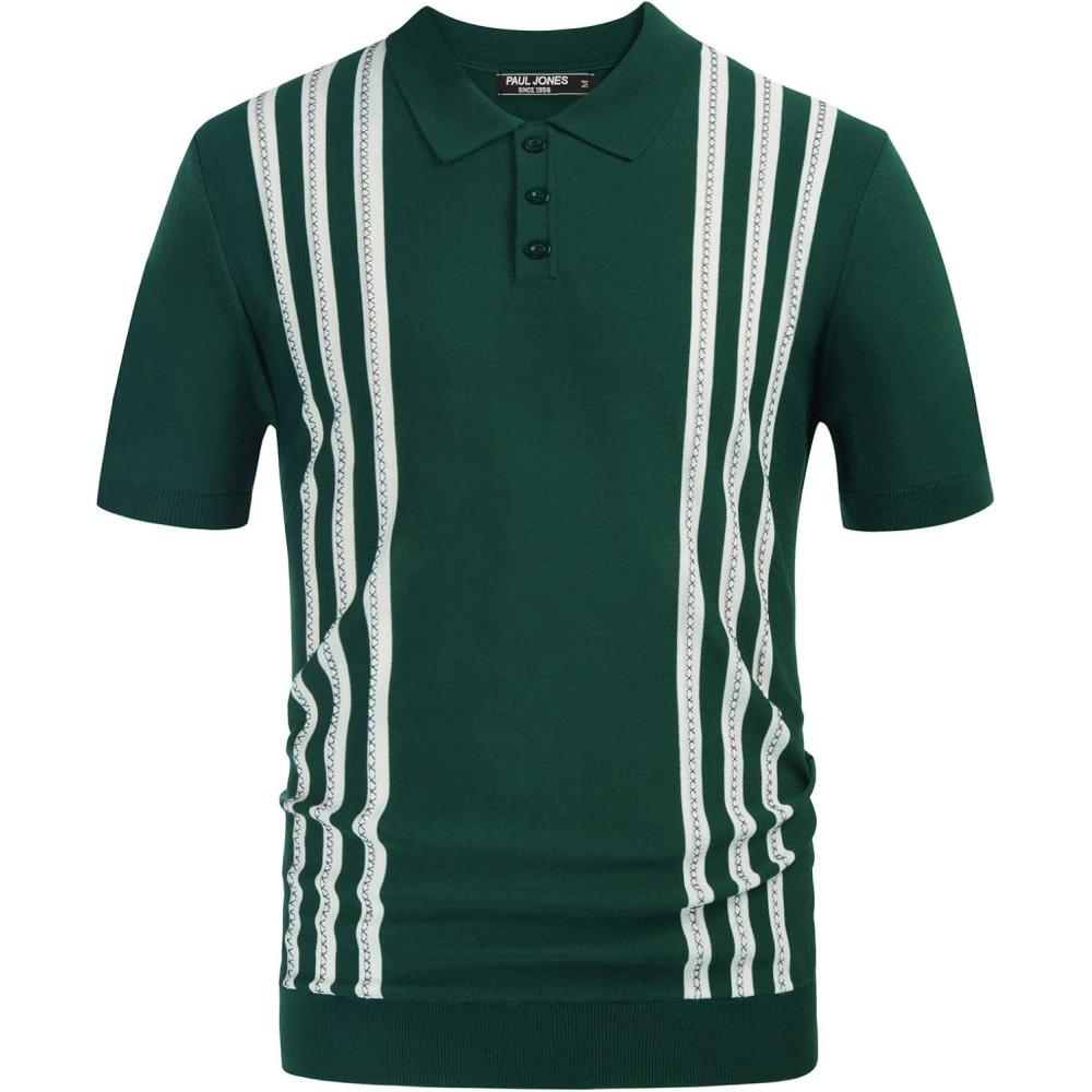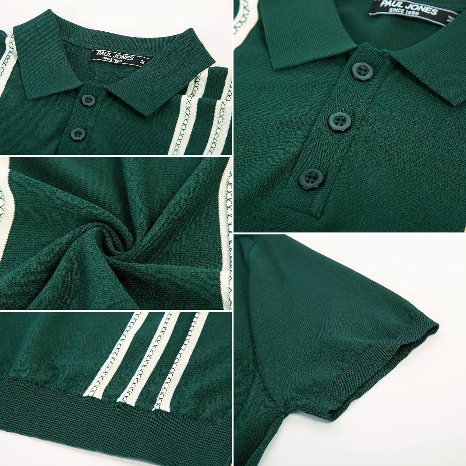 PJ PAUL JONES Mens Knitted Polo Shirts Short Sleeve Textured Pullover Golf Polo T Shirts(Dark Green)