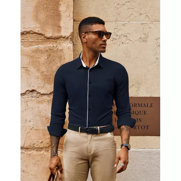 Be the first to review “PJ PAUL JONES Men’s Long Sleeve Wrinkle Free Dress Shirts Textured Business Casual Button Down Shirt Stretch Untucked Shirt(Navy)” Cancel reply